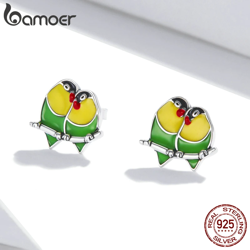 925 пробы серебряные серьги-гвоздики bamoer с эмалью, гипоаллергенн...