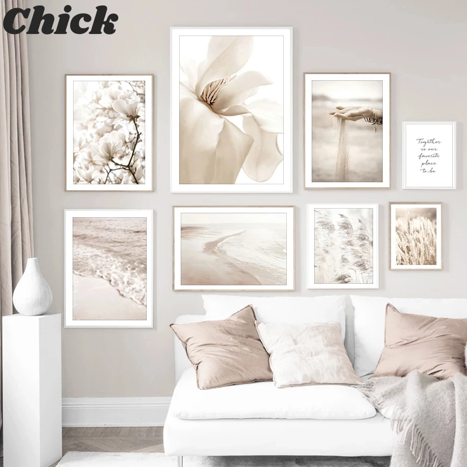 Бежевый тростник высушенные растения Цветок искусство стены картина...