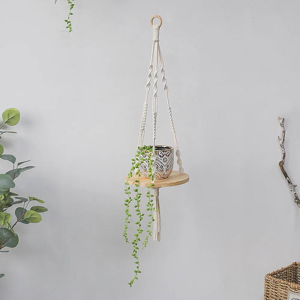Полки макраме для спальни и растений, украшение в стиле бохо, домашний Настенный декор, деревянная настенная полка, подсвечник, плавающие полки, подарок
