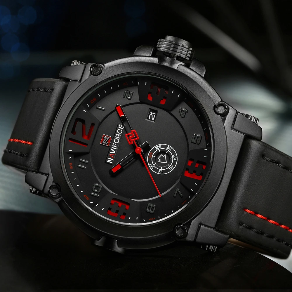 Часы NAVIFORCE Мужские кварцевые, с кожаным ремешком, черные, аналоговые, с датой