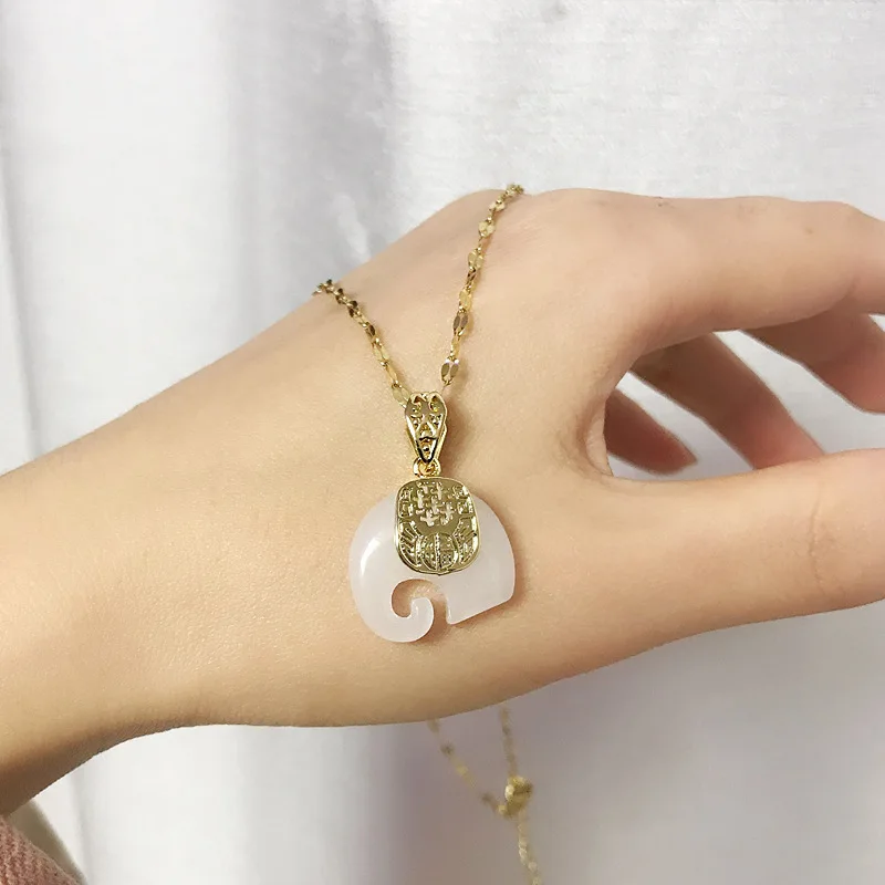 2021 винтажная подвеска в виде слона из белого нефрита Hetian, позолоченная цепочка 18 карат, ожерелье, чокер из нержавеющей стали с сапфиром, ювелирные изделия для женщин
