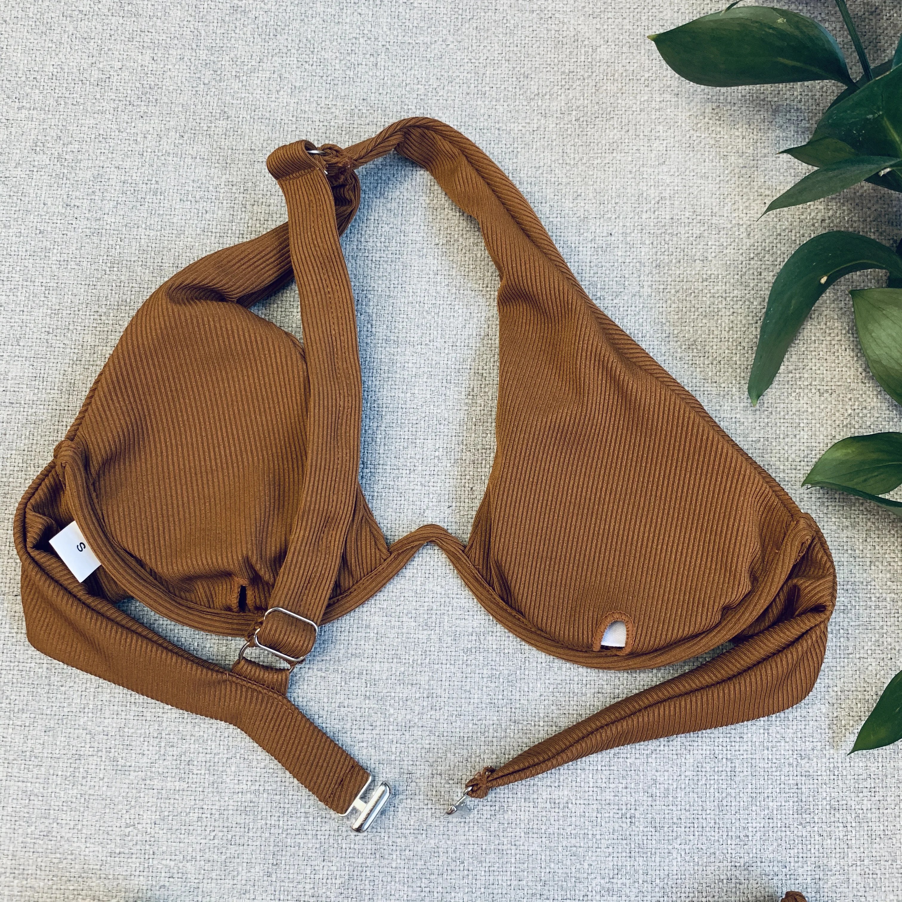 На 90-65-90 (75С) размер S сел хорошо, в чашках без запаса. Это полноценный 42 р . Лиф выполнен на одно плечо. Он на жестких косточках, с одной регулирующеся лямкой. Сзади лиф на металлической застежки. Чашка в размере S подошла как на мой третий размер, так и на первый у подруги. Внутри лифа есть поролоновые вкладыши, их можно вынуть. Фурнитура качественная. Плавки средней посадки, сидят удобно, не слишком закрытые. Ткань плотная в рубчик, не просвечивает. Тянется хорошо. Привычной тонкой подкладки у купальника нет, тут ткань идет в два слоя, как на плавках, так и на лифе. Исполнение качественное
