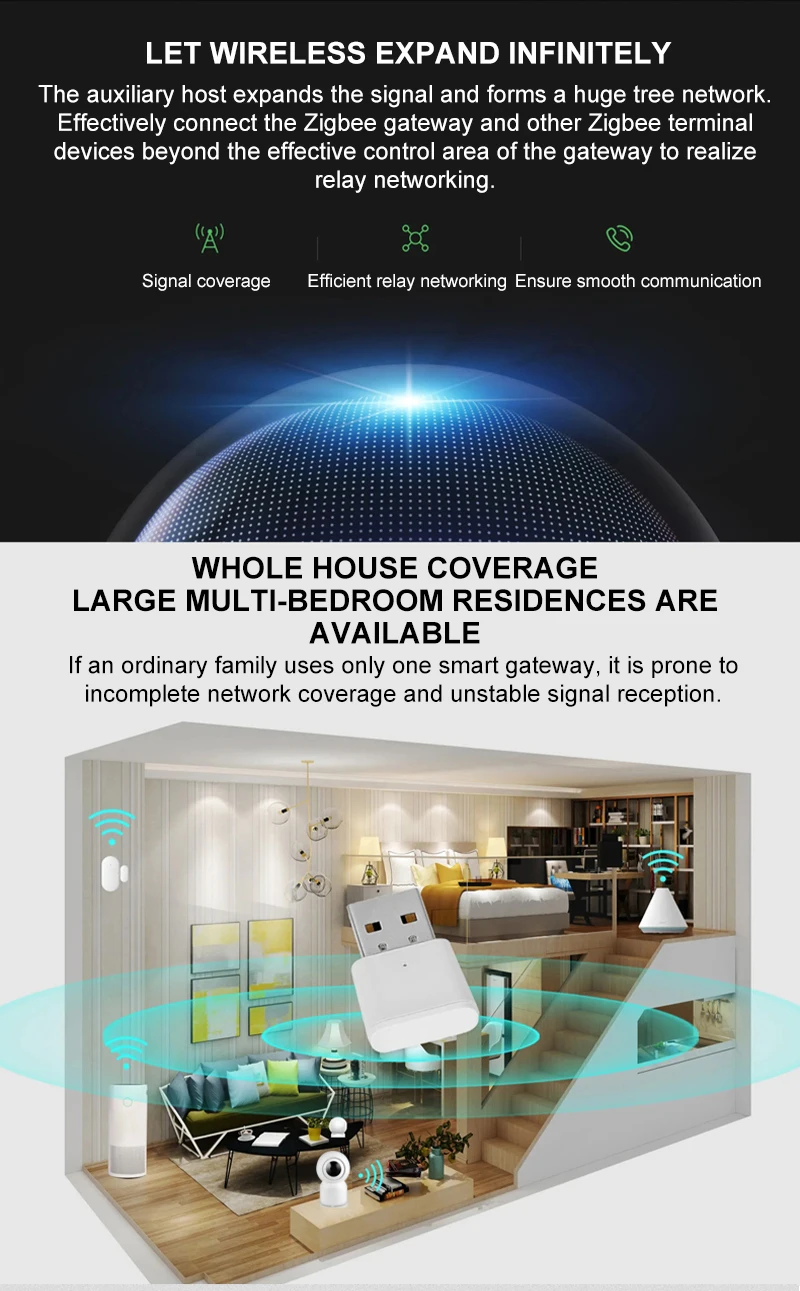 Если ваш дом слишком большой, сигнал zigbee не может закрывать каждый угол, вы можете использовать этот Репитер сигнала Zigbee.