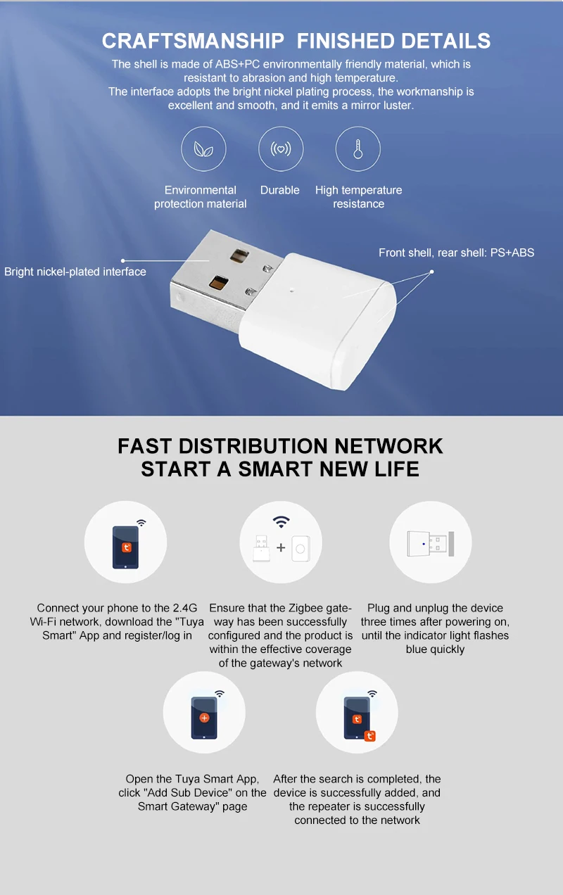 Мини Смарт-усилитель сигнала Zigbee от Tuya, ретранслятор, USB-устройство ZigBee, датчики, увеличение 20-30 м
