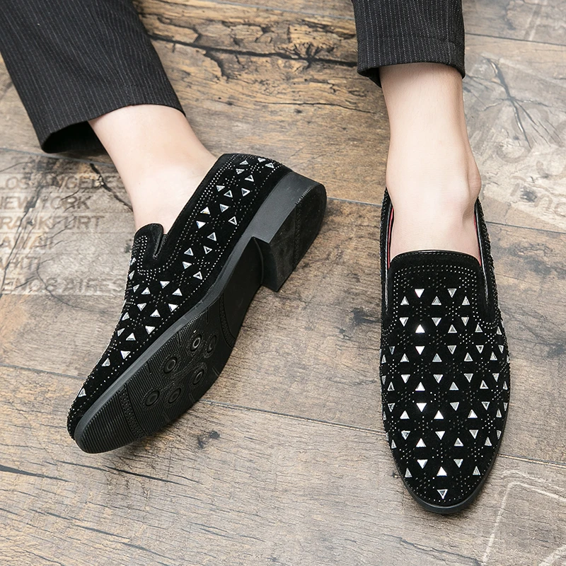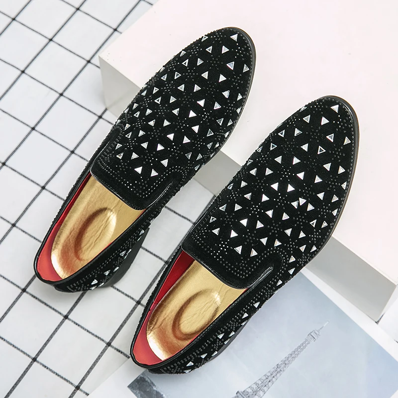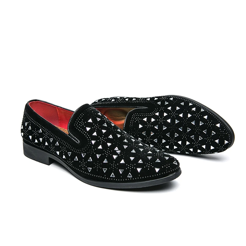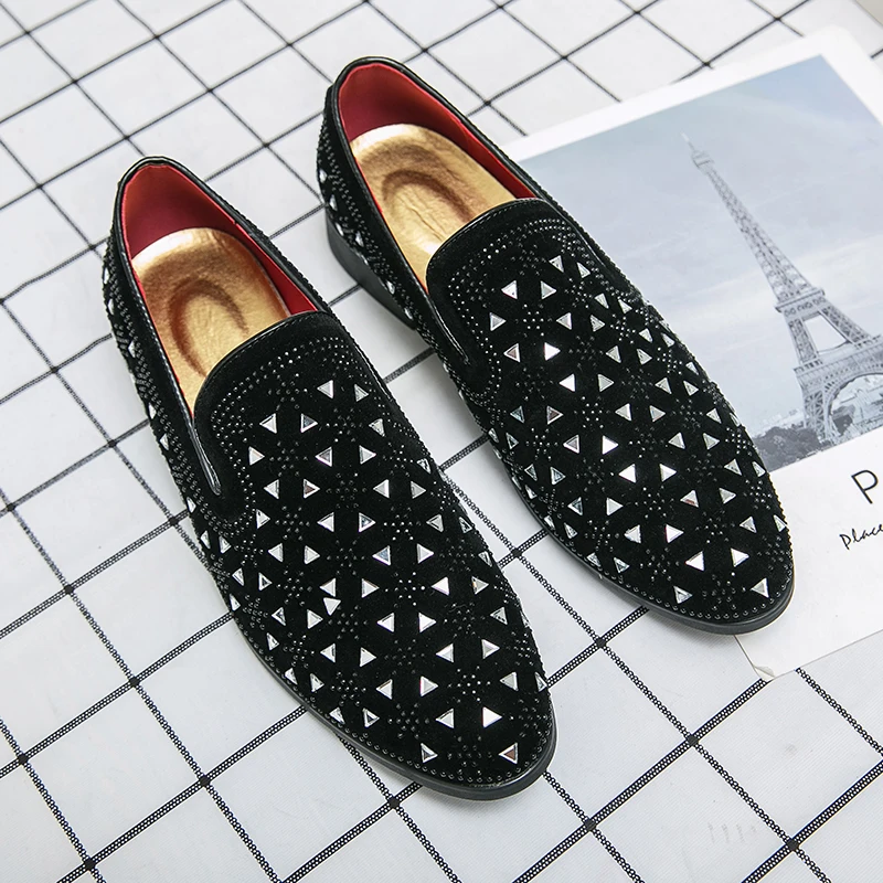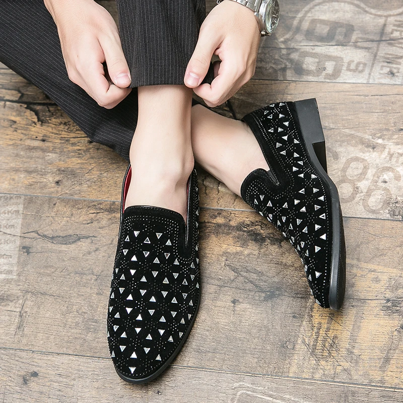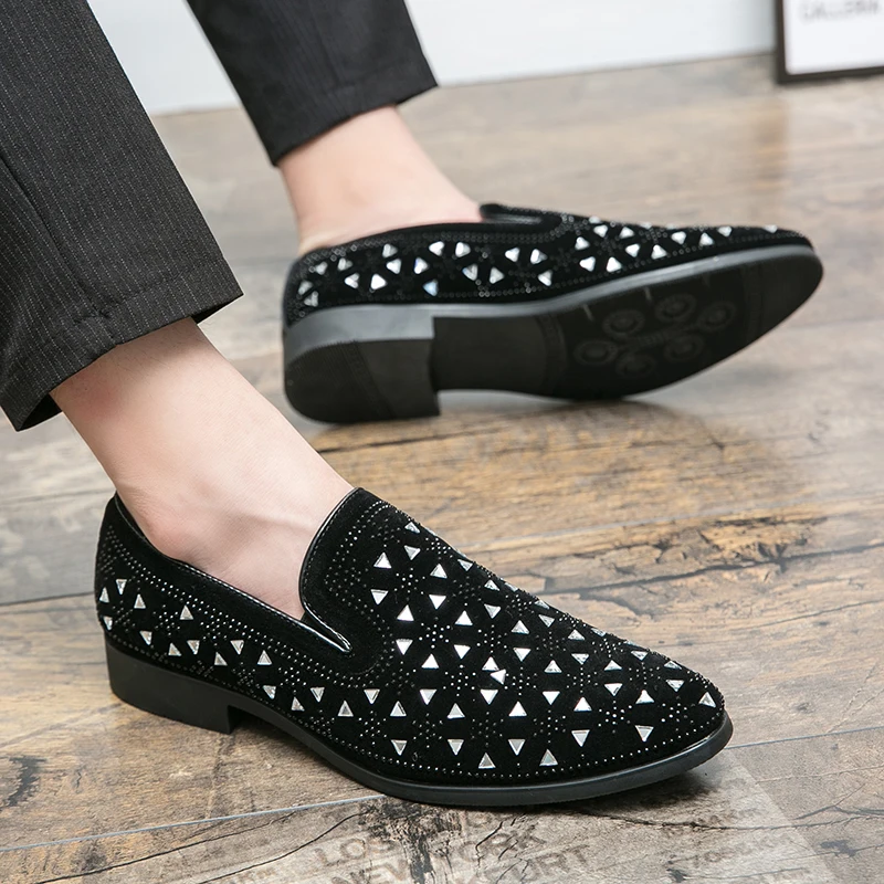 Роскошные Дизайнерские мужские острые заклепки стразы панк модельные туфли Лоферы мужские свадебные оксфорды Формальные туфли с кристаллами