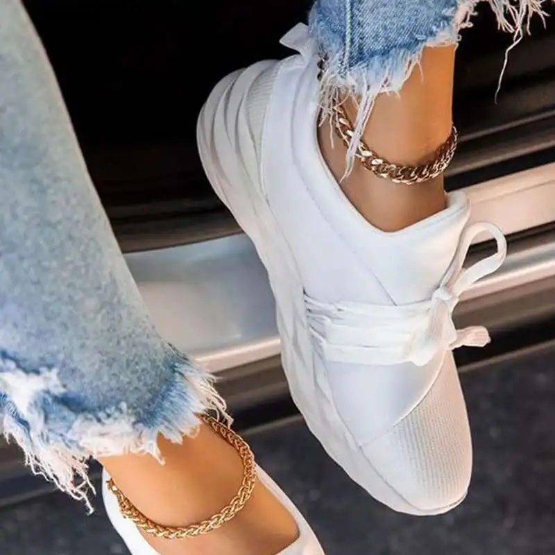 Кроссовки женские на платформе, дышащие, на шнуровке, Вулканизированная подошва, Спортивная повседневная обувь