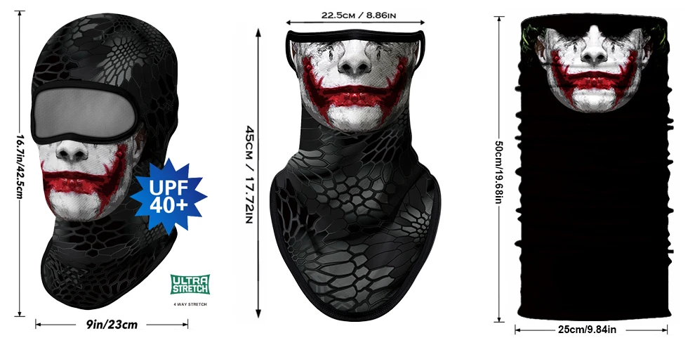 Шарф-гетра для Хэллоуина, тушь для ресниц клоуна, мотоциклетная маска для лица, дышащая Балаклава, туба, бандана, Спортивная Повязка на голову, лыжная маска