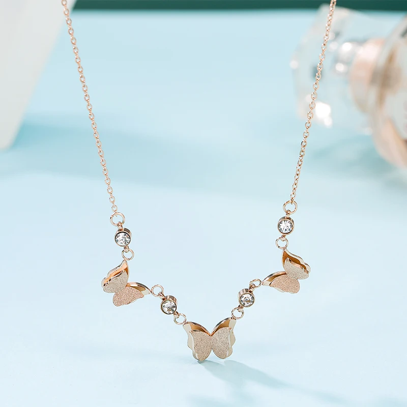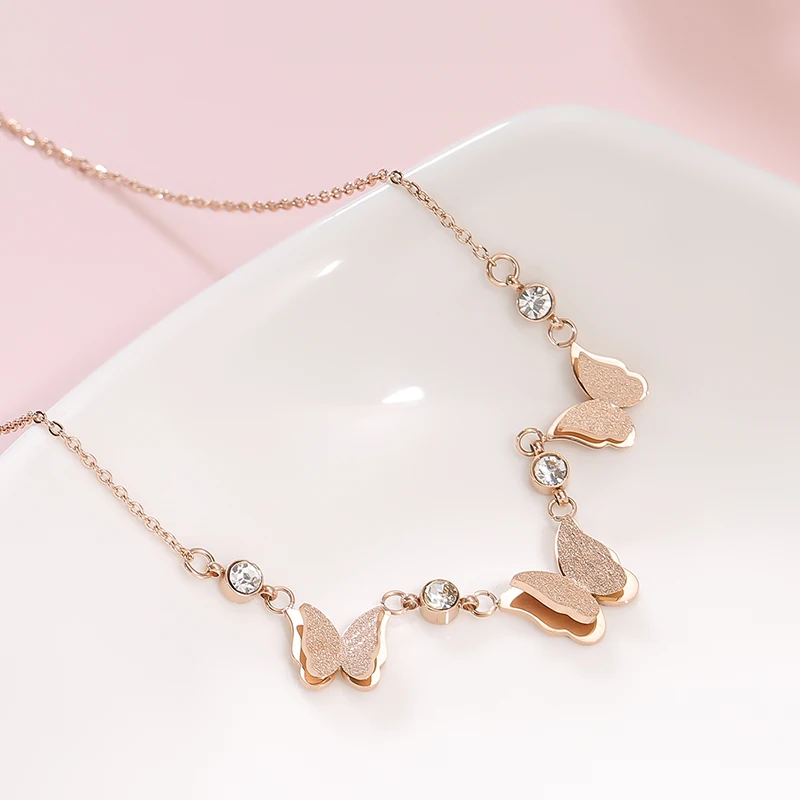 Ожерелье светильник под розовое золото с матовой бабочкой