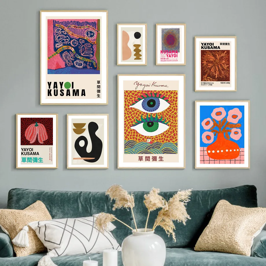 Yayoi Kusama, тыква, скандинавский постер, цветной блок, геометрия, абстрактные стены, искусство, печать, холст, живопись, домашний декор, фотографии, спальня, комната