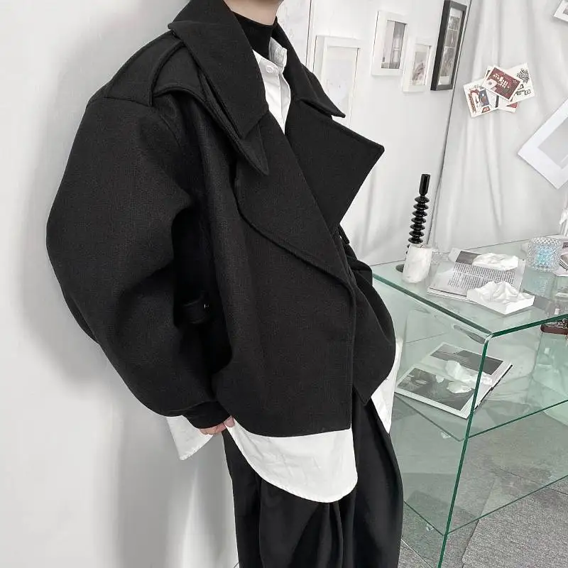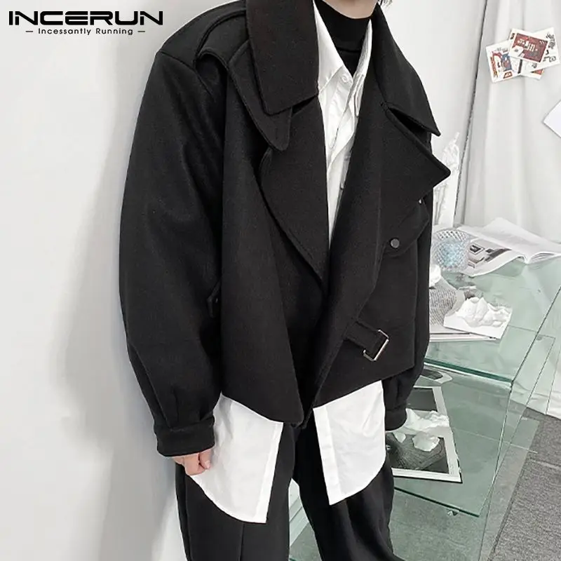 Куртка INCERUN Мужская однотонная с отложным воротником, модная уличная одежда с длинным рукавом, кроп-пальто из смешанной шерсти и шерсти, Повседневная Верхняя одежда с карманами, 5XL, 7, 2022