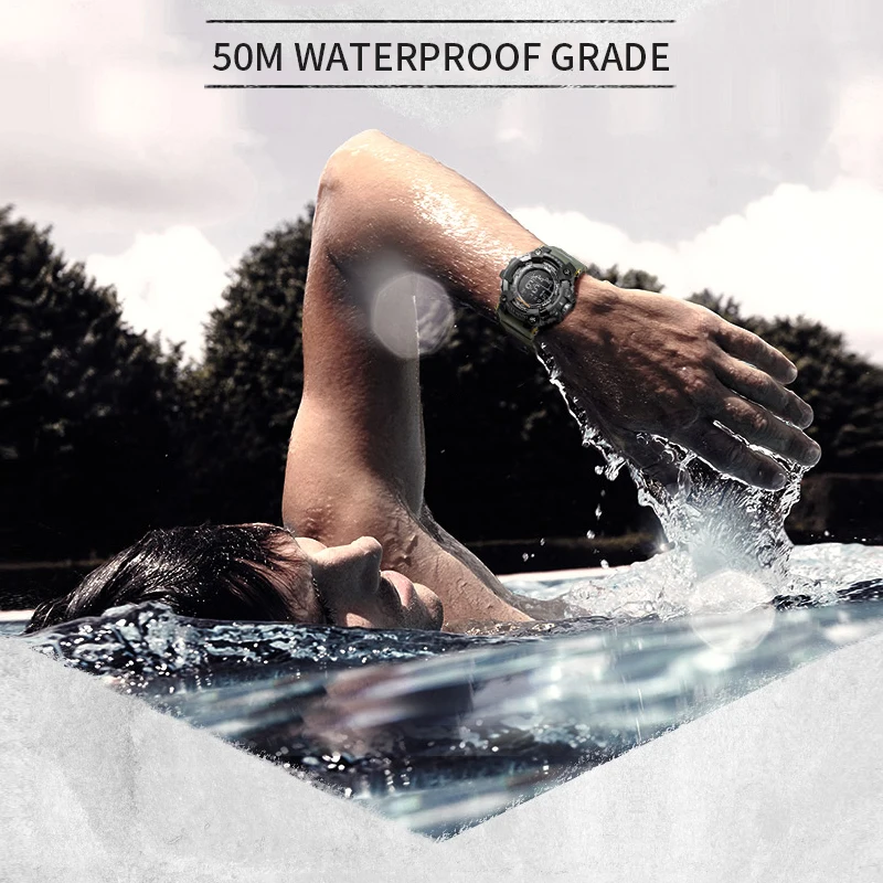 Часы мужские электронные, с большим циферблатом, водостойкие, 50 м