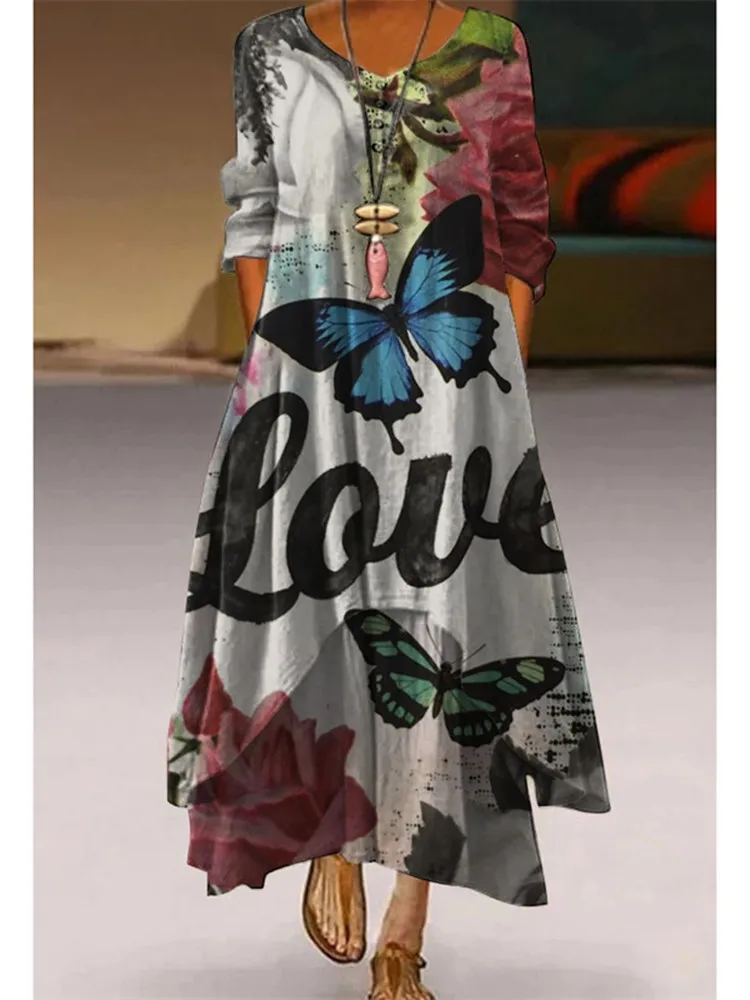 Длинное платье-макси в стиле Харадзюку с принтом бабочки, женские м...