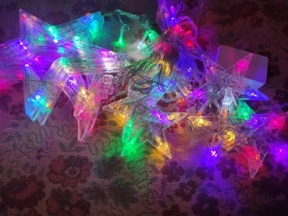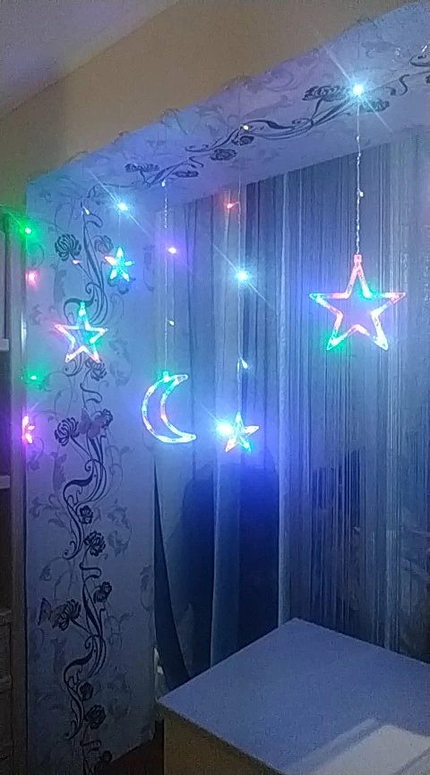 брала гирлянду с месяцами и звёздами. очень красивая, цветная, есть розовый фиолетовый цвет. Правда нет нижнего яруса маленьких звёзд как на фото продавца. А так ,очень красивая! советую!!!