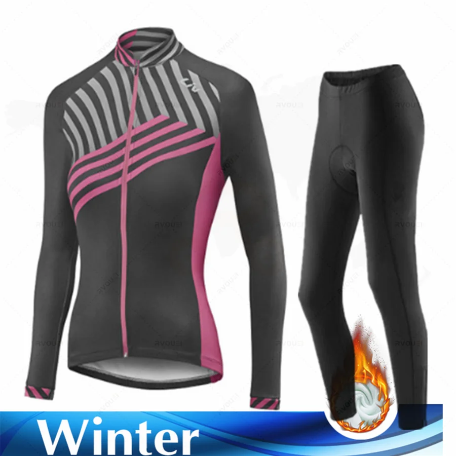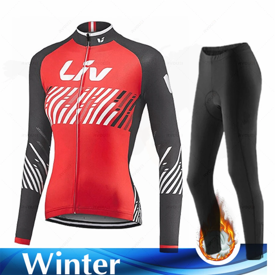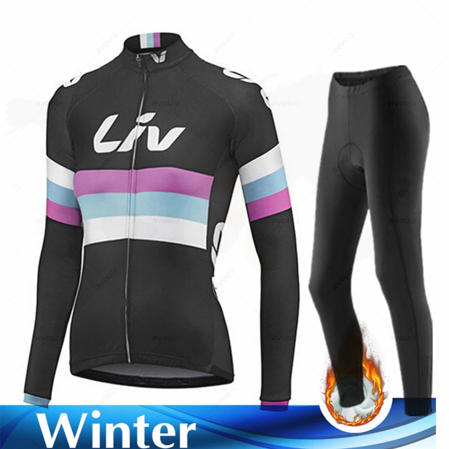 Liv Велоспорт Джерси Женская мода с длинным рукавом Велоспорт Джерси комплект 2021 новый зимний термальный флис Женский Горный Дорожный велосипед Джерси