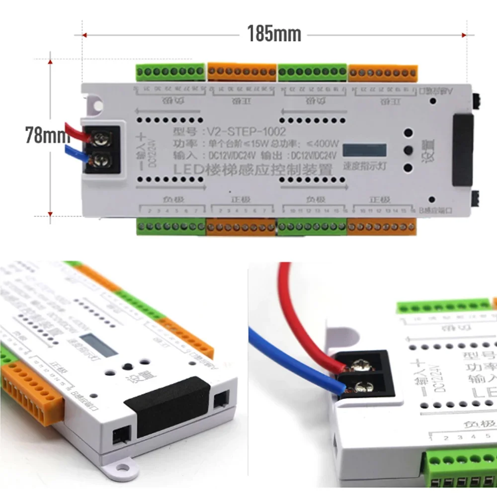 1-A/B датчики должны быть установлены на входе и выходе из лестницы и лицом к телу человека.2-продукт низкого напряжения 12V-24V, подключите к сети питания трансформатор. Не подключайте напрямую 220 В, это сгорит контроллер.3. Изделие не является водонепроницаемым.