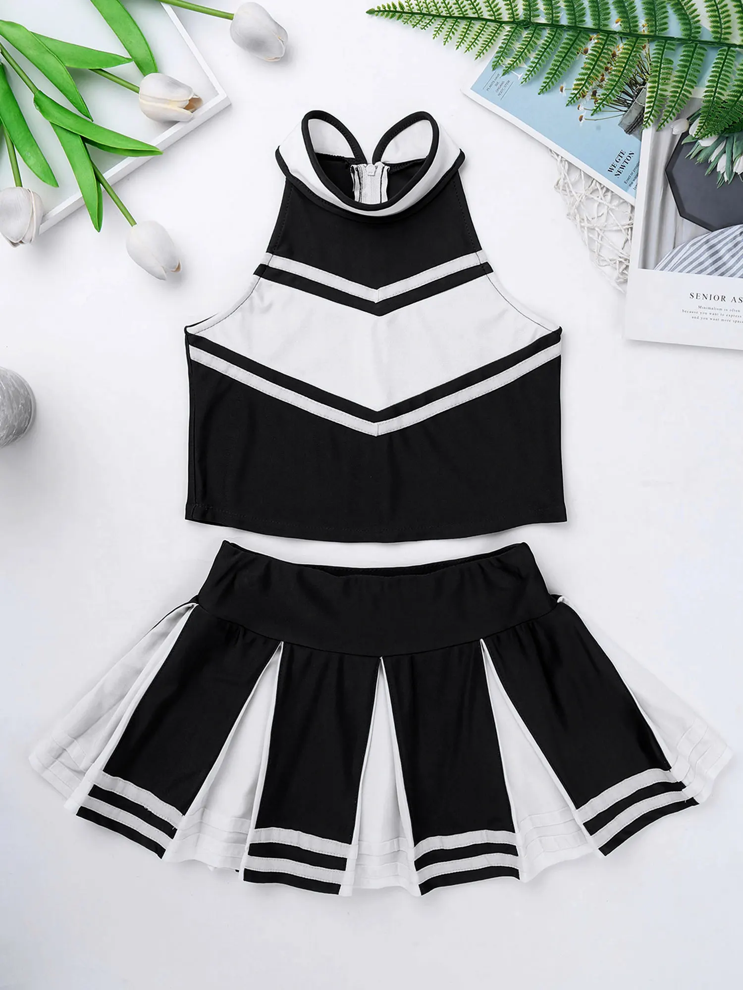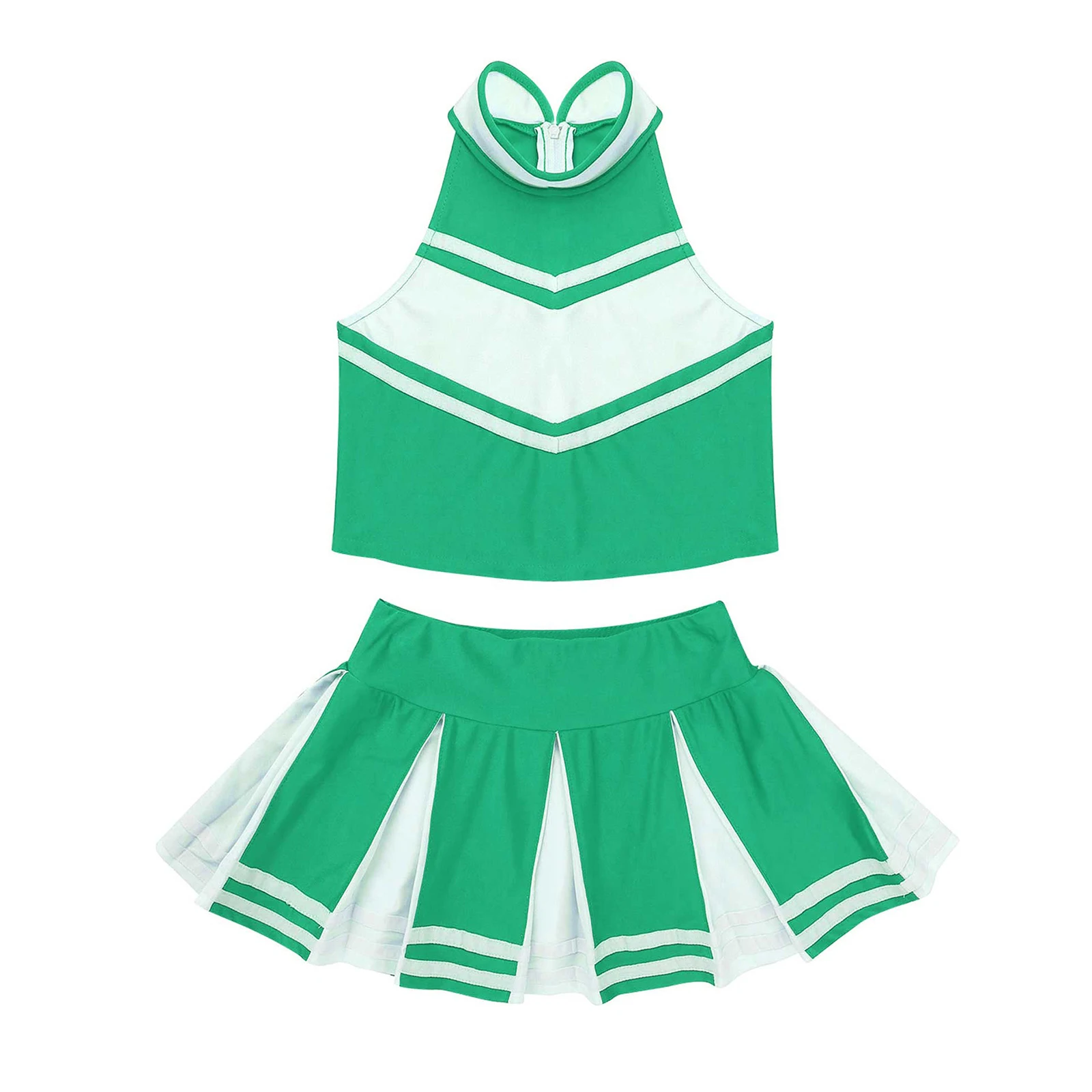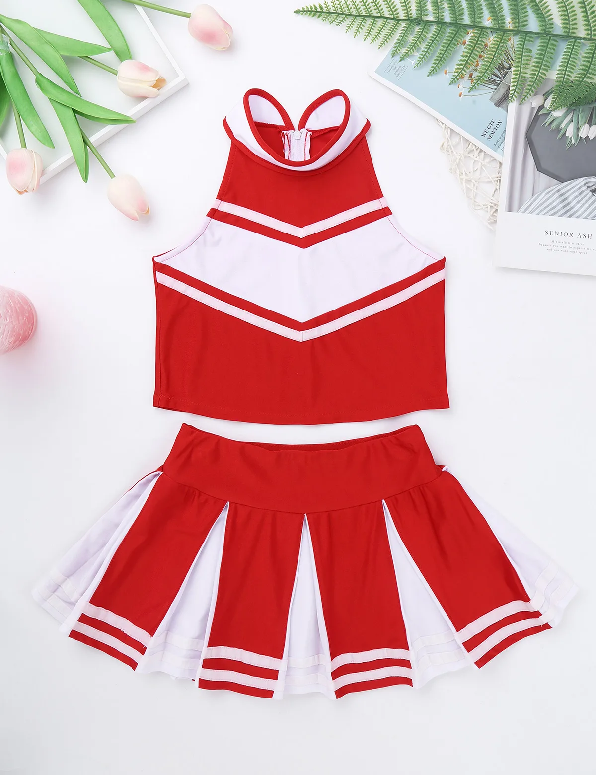 Топы и плиссированная юбка для девочек, комплект школьной формы для чирлидинга, костюм Болельщицы, сценическое представление, косплей