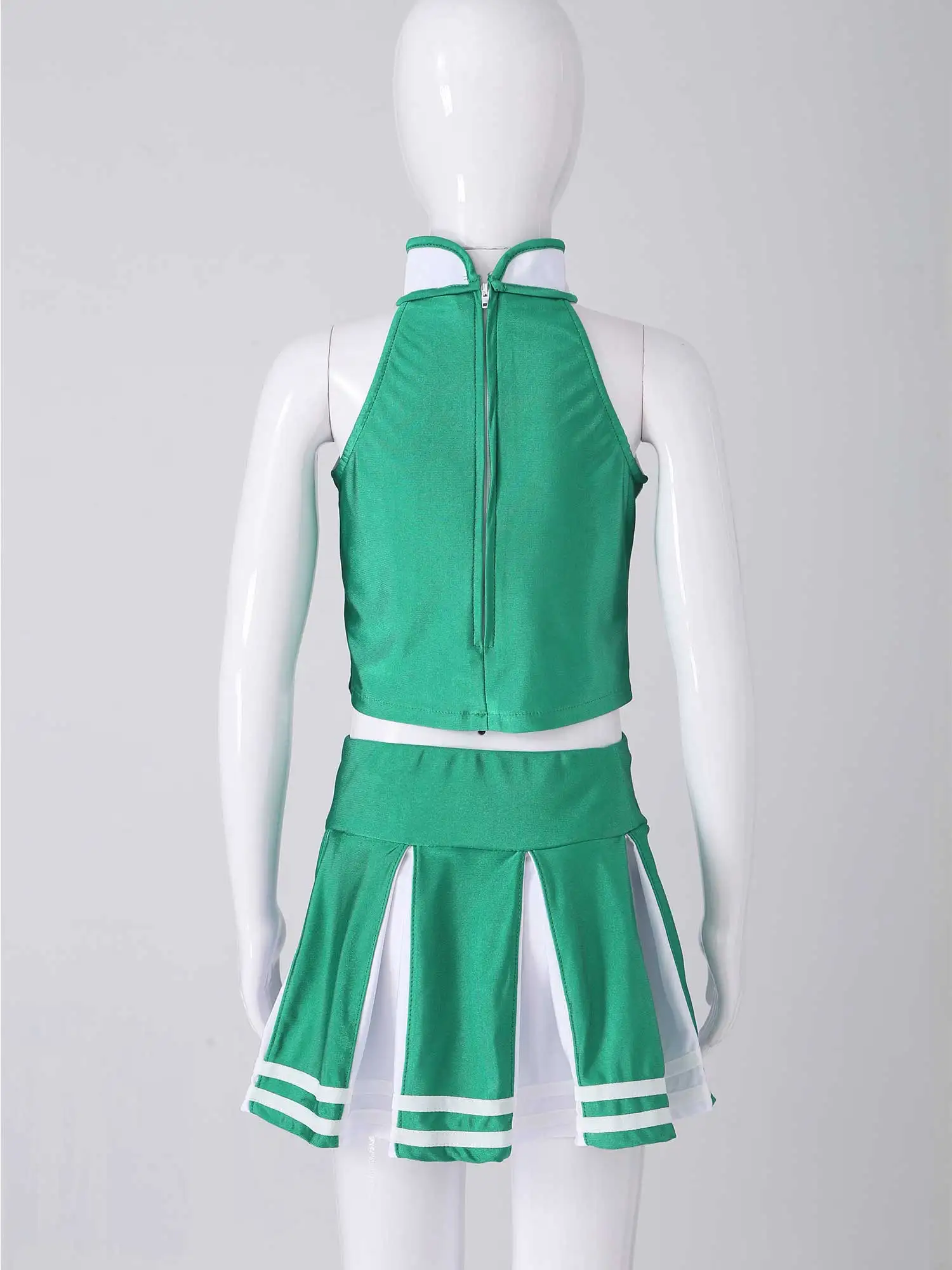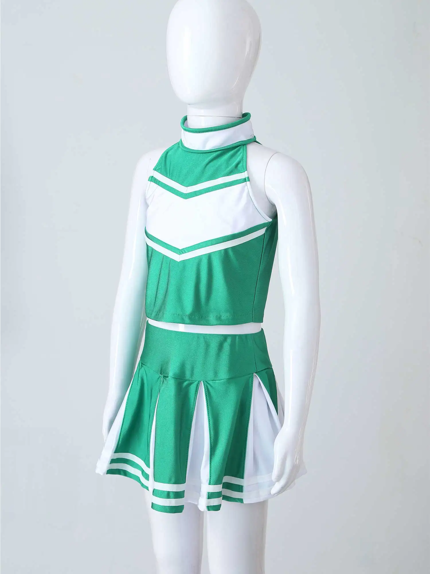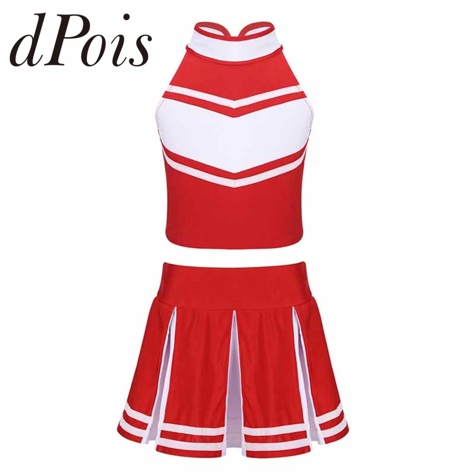 Топы и плиссированная юбка для девочек, комплект школьной формы для чирлидинга, костюм Болельщицы, сценическое представление, косплей
