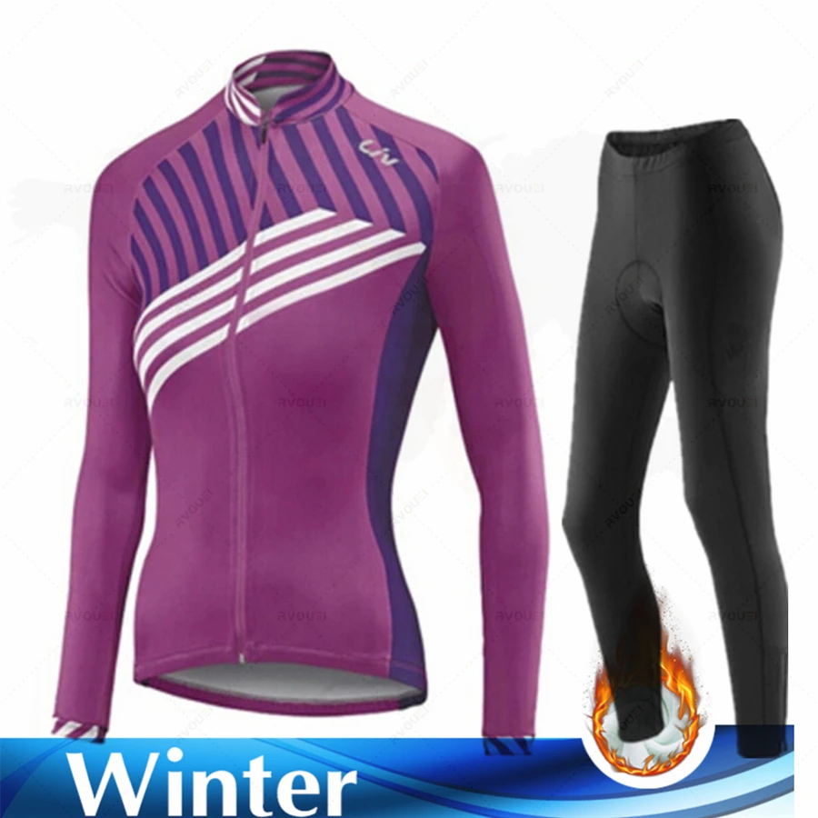 Женская велосипедная одежда, зимний теплый флисовый велосипедный комплект из Джерси с длинным рукавом, женская одежда для горного велосипеда