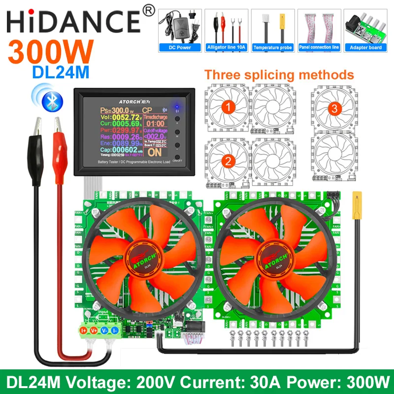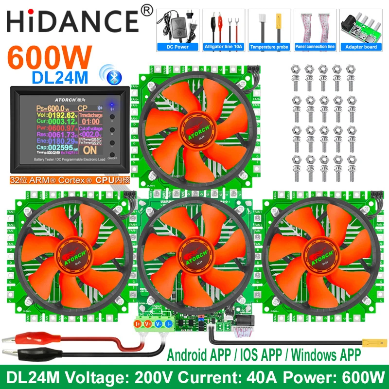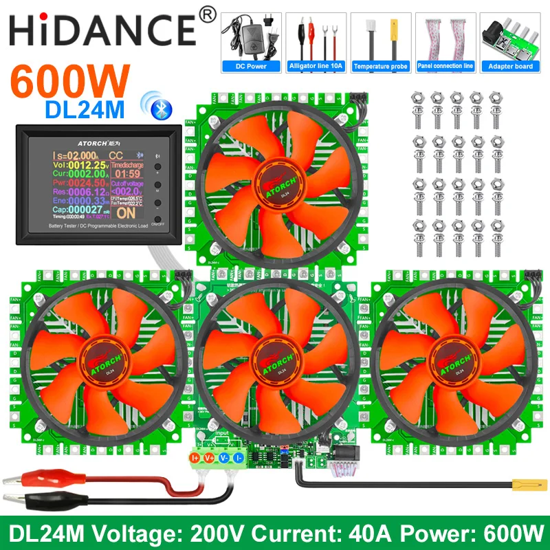 1.DL24M-150W хост цветной дисплей Bluetooth цифровое управление кривая версия нагрузки Tesr x12.DC12V 1A блок питания x13. Мужские и женские винты X5 наборы X44. Датчик температуры x15. Красный и черный одиночная линия крокодил клип линия x16. Адаптер стандарта США в ЕС x17,150 Вт вентилятор аксессуары X1