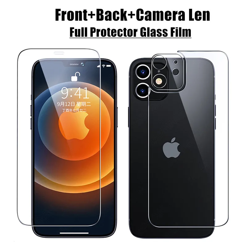 3-в-1 Передняя плёнка + Задняя плёнка + камера Len Полный протектор для защиты от солнца стеклянная пленка для iPhone 13 11 12 Pro XS Max мини X XR 6 6S 7 8 Plus SE 2 Защитная пленка для экрана