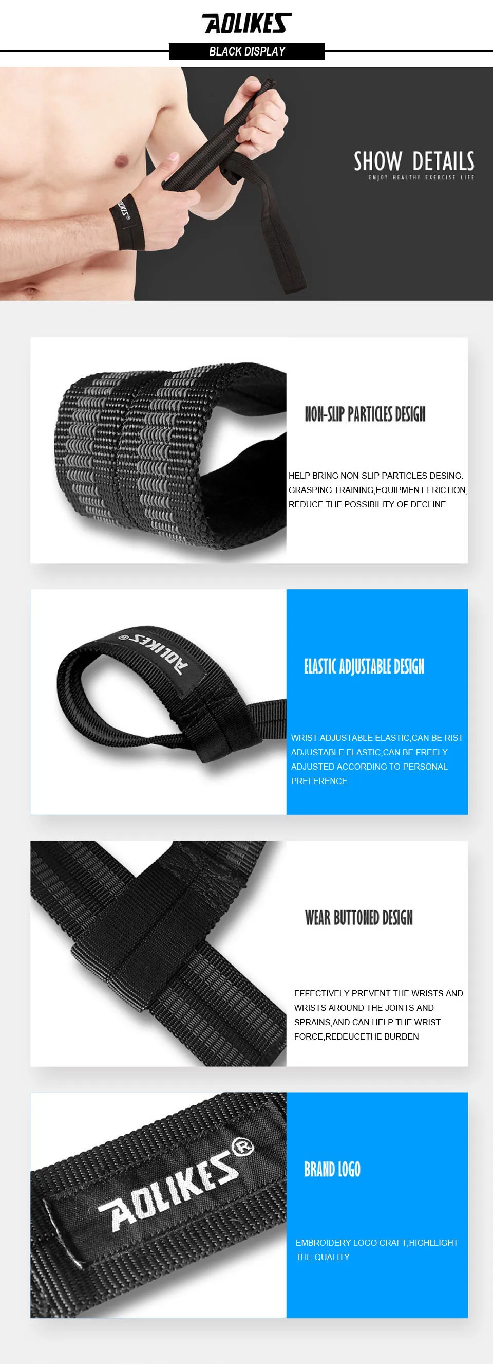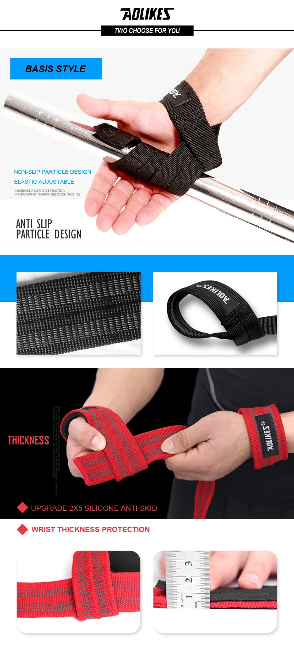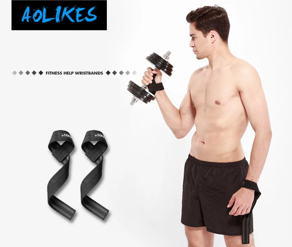 AOLIKES 1 пара, ремешки для тяжелой атлетики, Регулируемые нескользящие ремешки для тренировок, для занятий фитнесом, подтяжки, ремешок для поддержки запястья