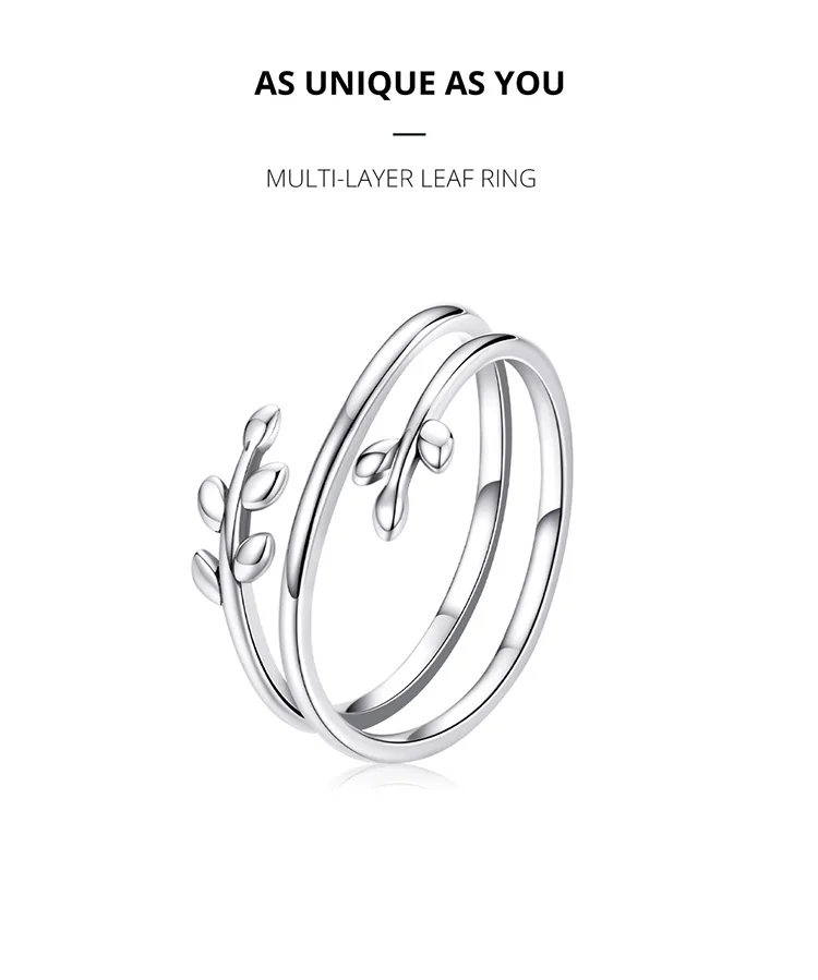 Bamoer регулируемое Открытое кольцо из стерлингового серебра 925 пробы Новое модное многослойное кольцо в виде листьев для женщин и девочек серебряное кольцо ювелирное изделие подарок