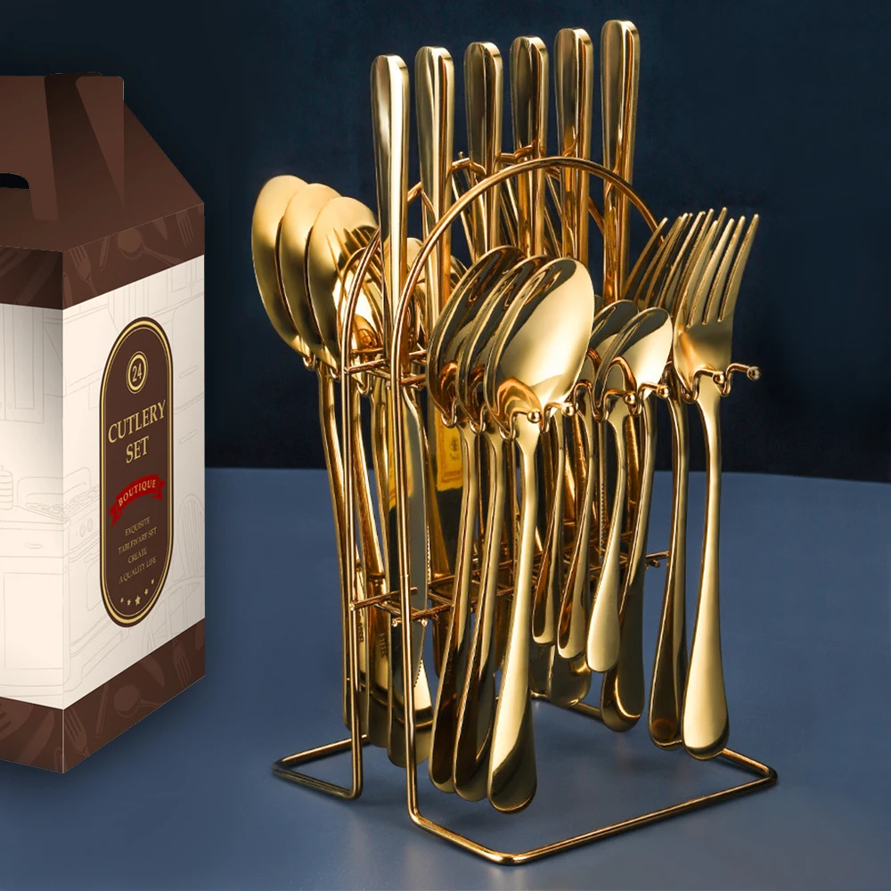 Mobuta Набор столовых приборов из нержавеющей стали комплект из 24 предметов зеркальная столовая посуда нож вилка Ложка чайная ложка золото Серебряный Многоцветный подарок столовые приборы с полкой