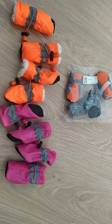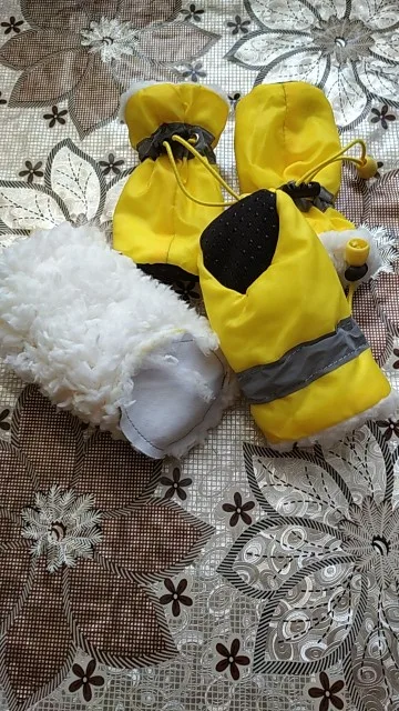 сапожки вообще крутые,хорошего качества,нитки нигде не торчат,тепленькие,регулируются,так что думаю собака не сможет потерять их . продавца рекомендую. но ,наша собака тупо их боится,когда одели стояла как вкопанная и не двигалась,надеюсь на улице по-другому себя будет вести