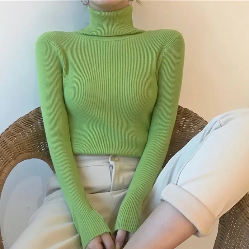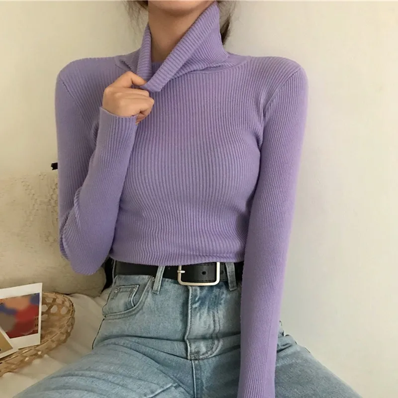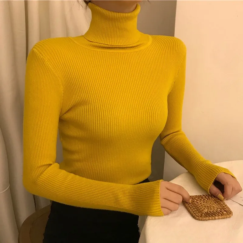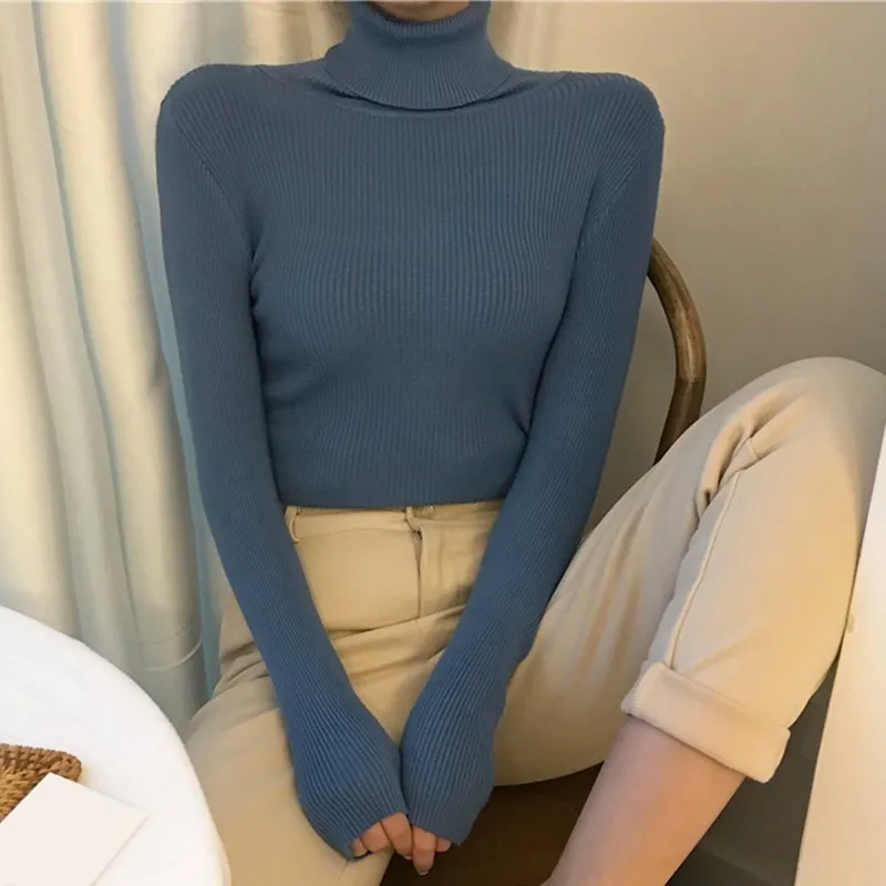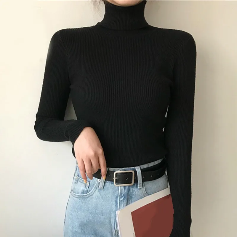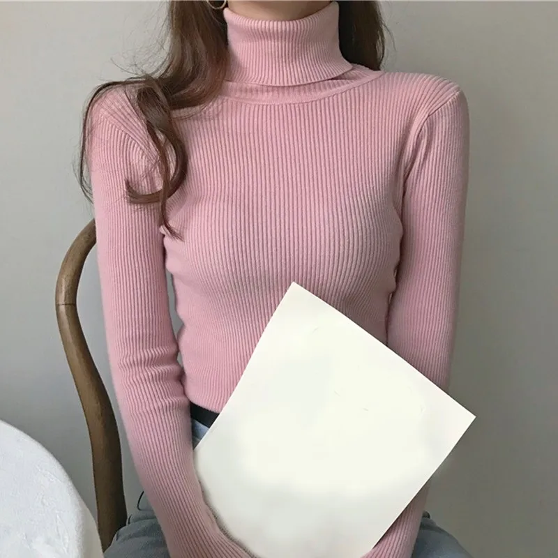 Женский трикотажный свитер с высоким воротником и длинным рукавом