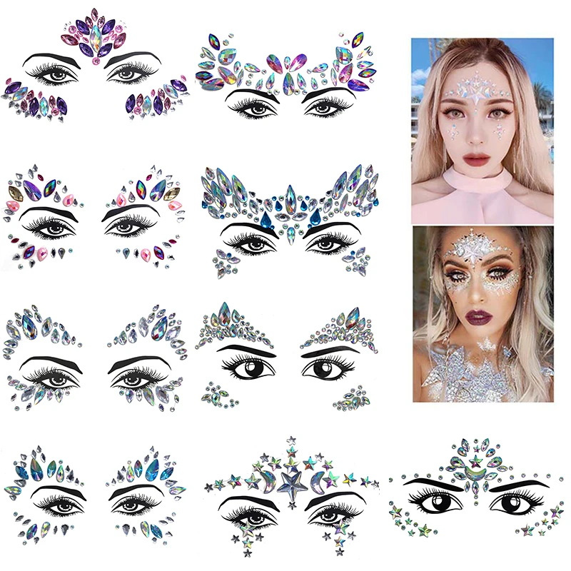 Наклейка для бровей, лица, боди-арта, маскарада, блестящая, украшение для лица, 3D, Хрустальная, музыкальный фестиваль, наклейка на дрель, временная татуировка, наклейка