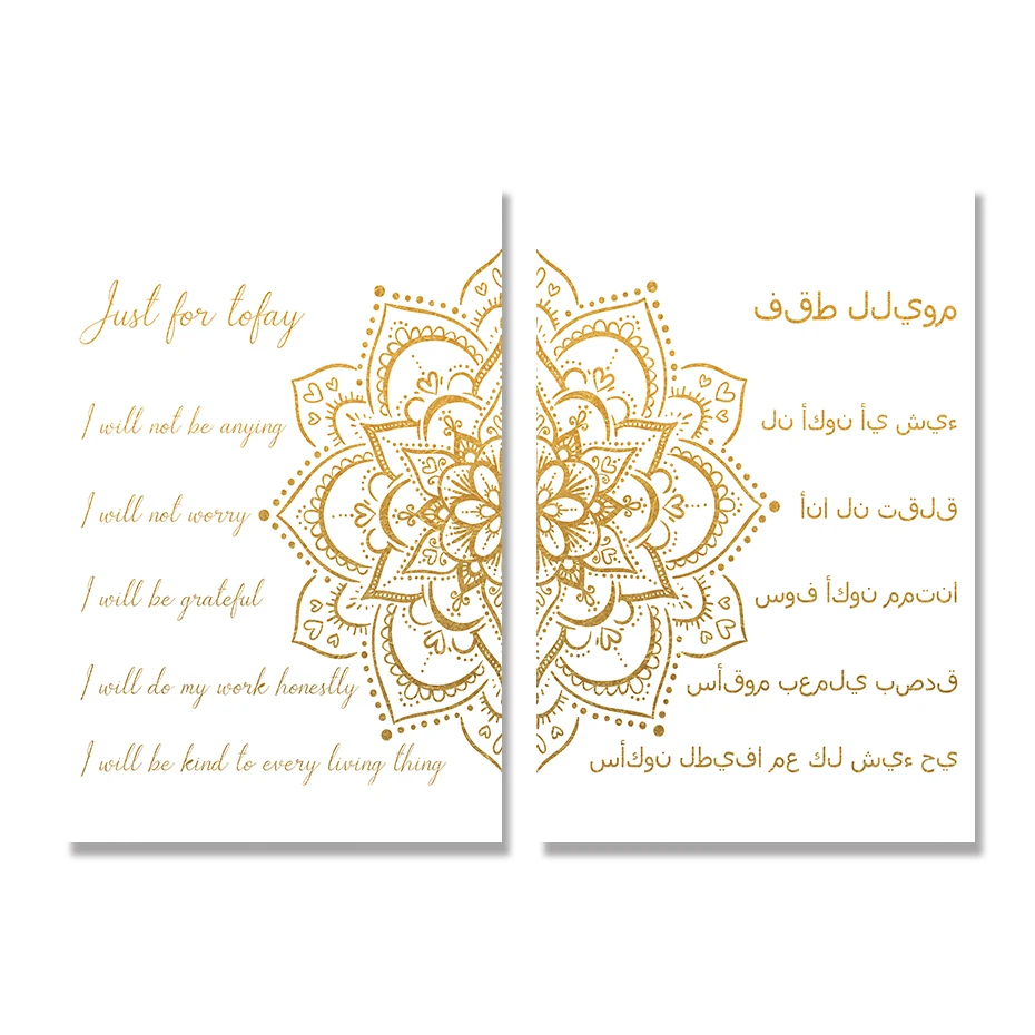 Цветочный Исламская каллиграфия Wall Art принты золото Мухаммад Алл...