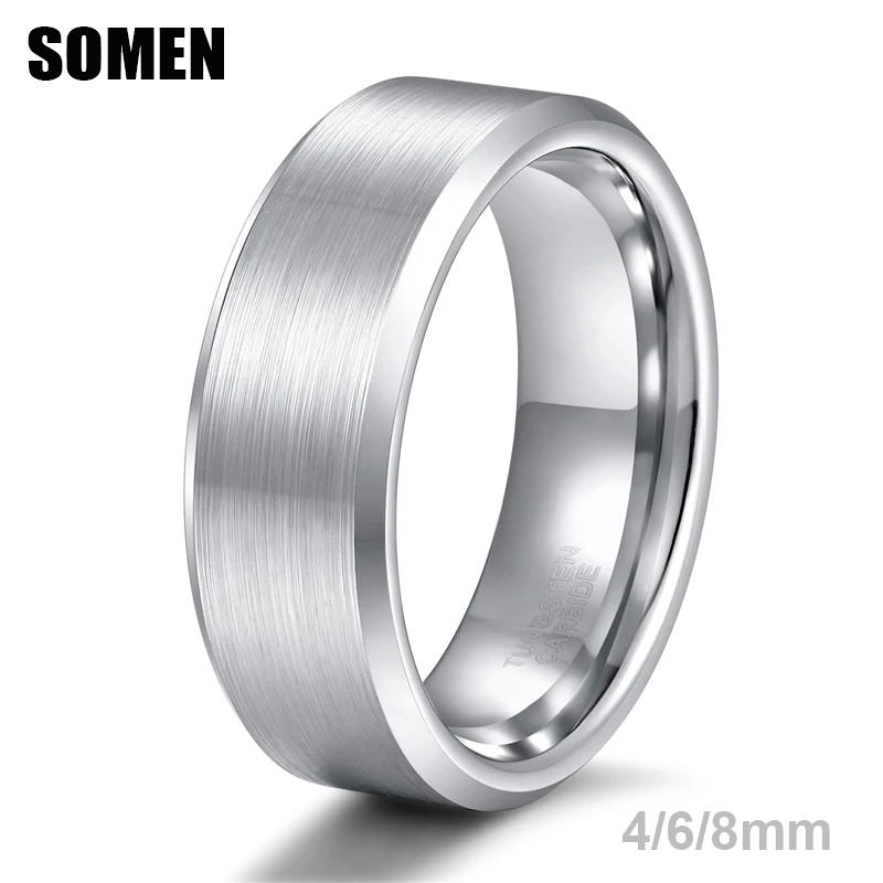 Мужское кольцо серебряного цвета Somen, кольцо из матового вольфрама 468 мм, Классические обручальные кольца, мужские обручальные кольца, ювелирные изделия