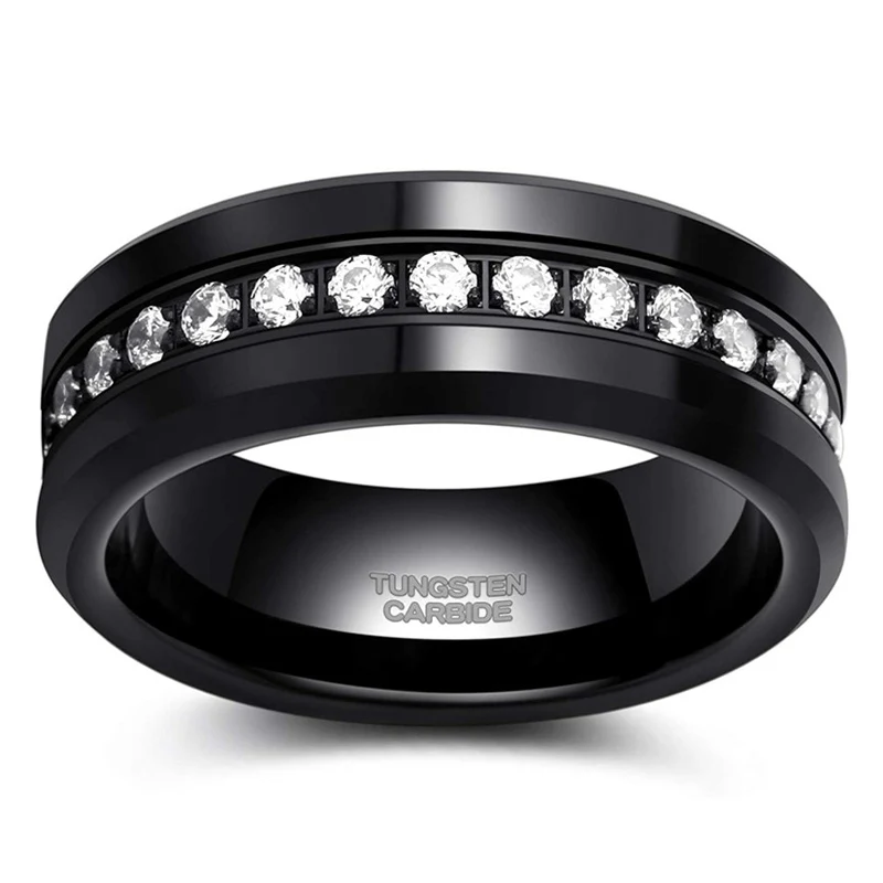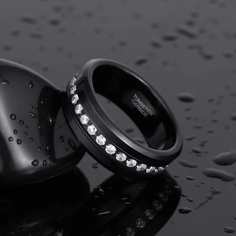 Номер моделиMens CZ Rings Black Tungsten Wedding Band Simulated Diamond Inlay