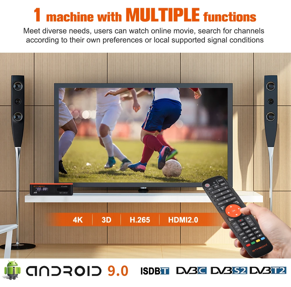 Новинка GTMEDIA GT Combo 4K 8K Android 9,0 Smart TV Box DVB-S2 T2, встроенный Wi-Fi, спутниковый ТВ-приемник декодер