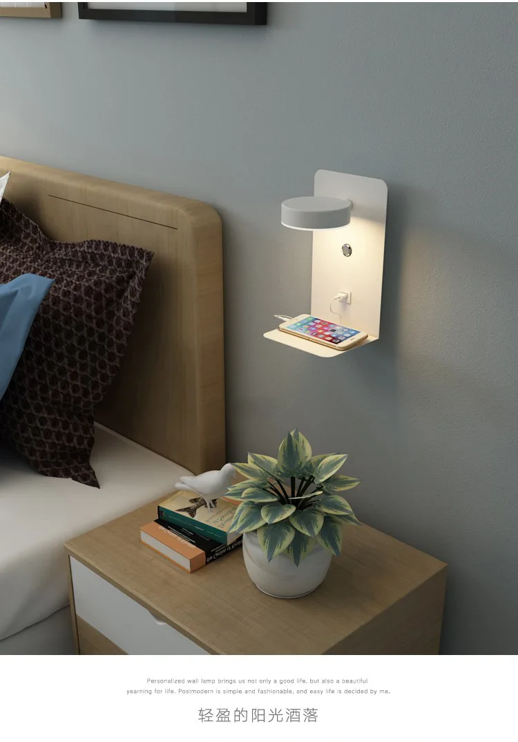 Для домашнего декора, прикроватный настенный светильник, светодиодное освещение для спальни, украшение комнаты, USB перезаряжаемое бра для чтения с переключателем