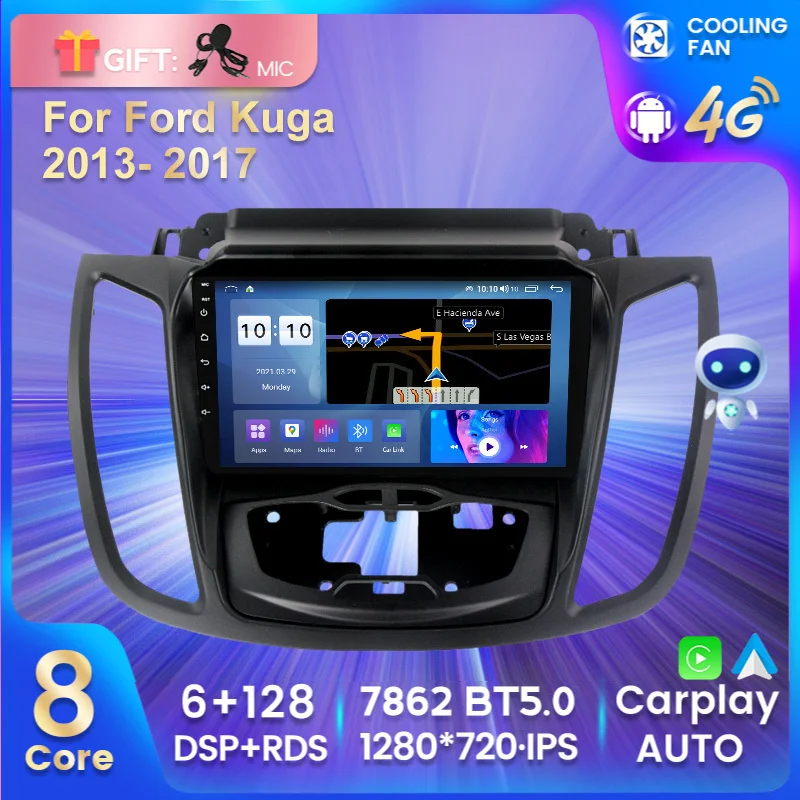 Автомобильный мультимедийный плеер IPS 7862C 6G 128G Android11 все в одном, интеллектуальная система для Ford Kuga Escape 2013-2016, встроенный Carplay