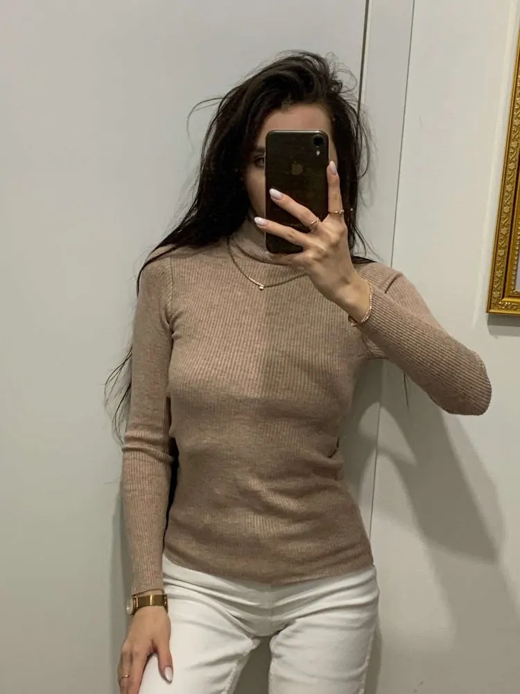 Свитер женский трикотажный с длинным рукавом и высоким воротником