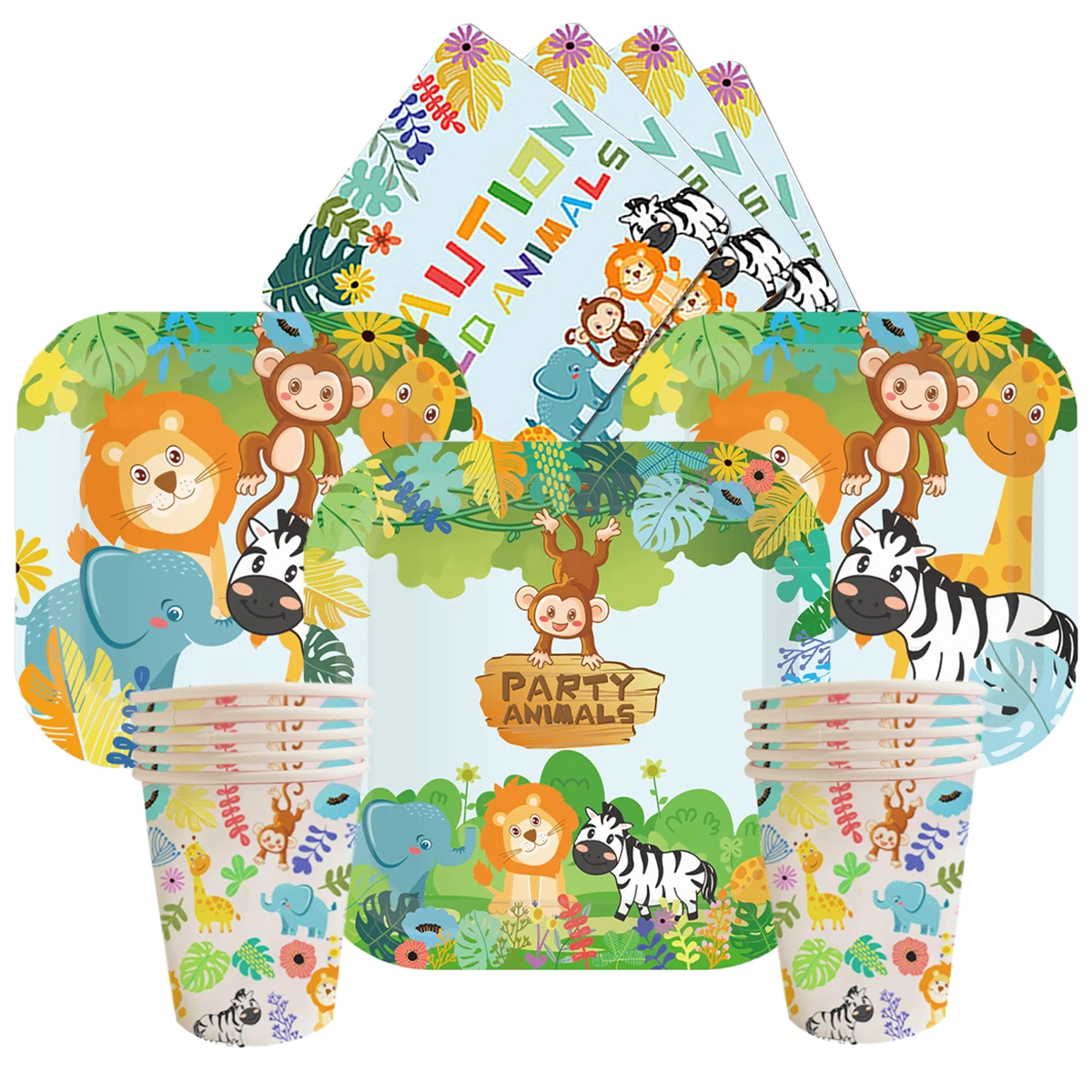 Одноразовая посуда с животными в лесу, обезьяна, лев, Зебра, слон, ...