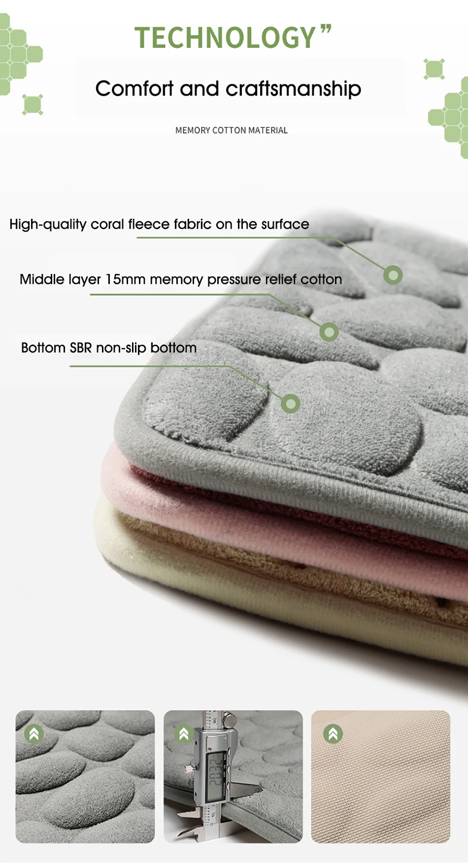 Нескользящий коврик для ванной GURET, коврик с тиснением из булыжника для ванной комнаты, напольный коврик с эффектом памяти, впитывающий напольный коврик, коврики для дома