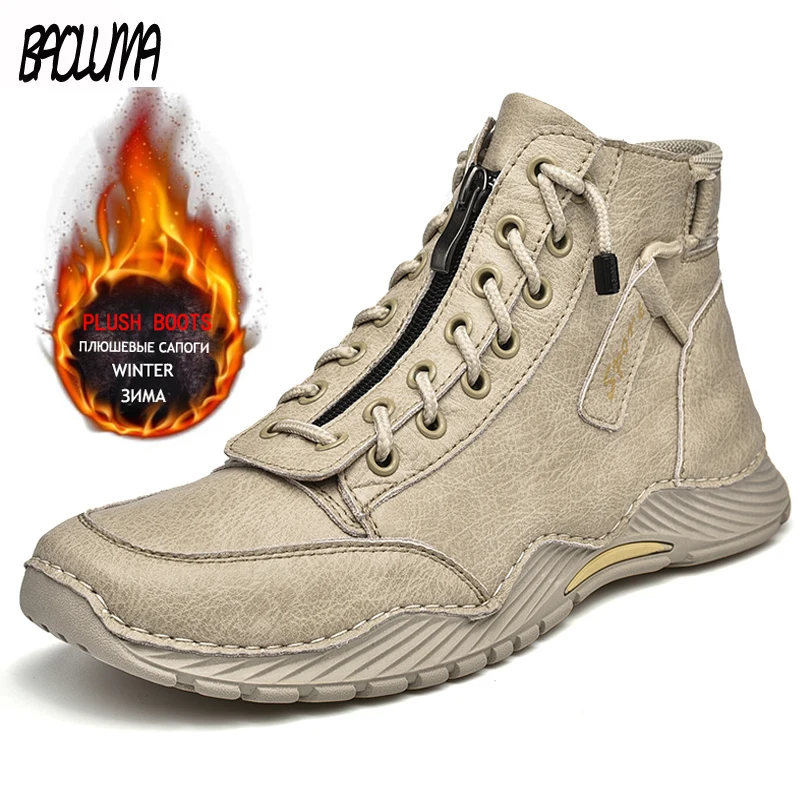 Мужские классические зимние ботинки из натуральной кожи, плюшевые теплые мужские зимние ботинки на платформе, уличные мотоциклетные ботинки в стиле панк, новая Мужская Рабочая обувь
