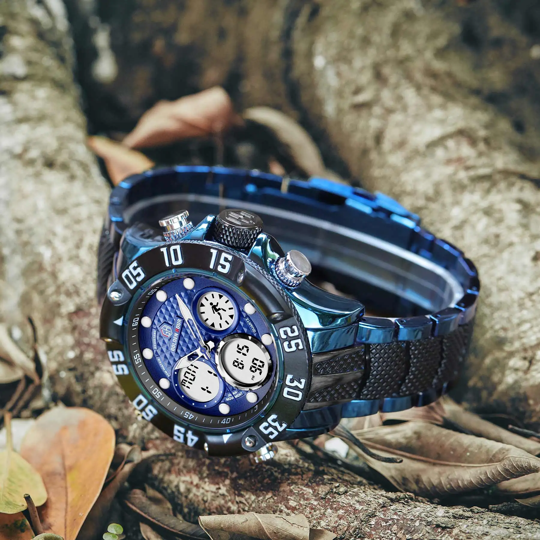 Часы мужские кварцевые в стиле милитари, с ремешком из нержавеющей стали