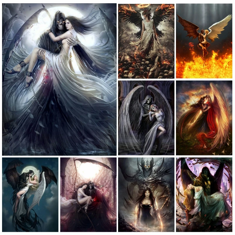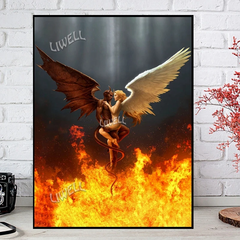 Алмазная 5d картина сделай сам, вышивка с ангелом, дьяволом, любовью, вышивка крестиком, полное обучение, Мозаичный набор, Декор для дома