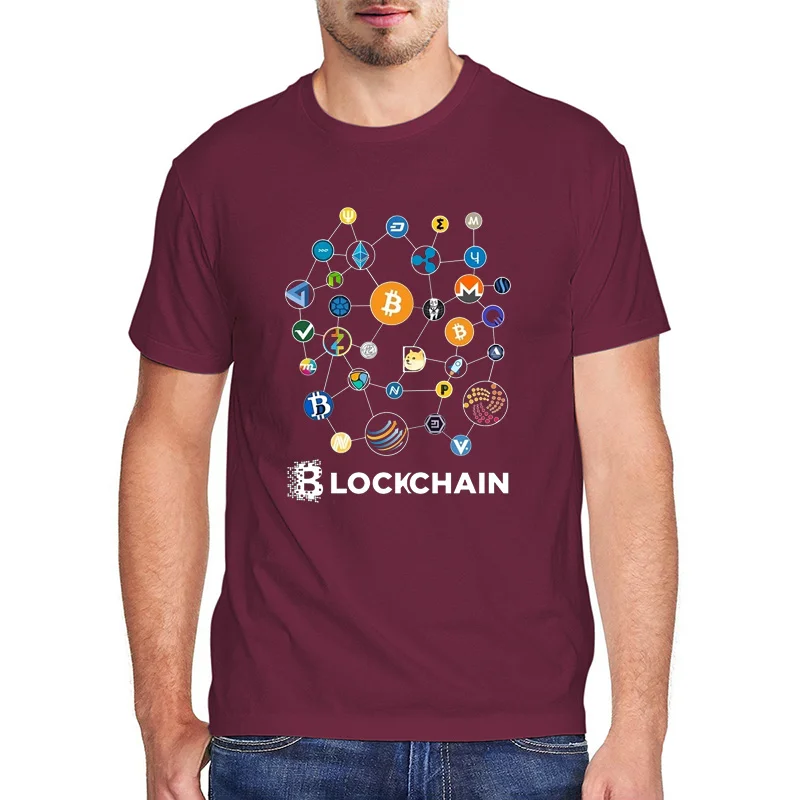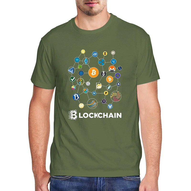 Блокчейн Футболки BitCoin Litecoin Ethereum Криптовалюта 100% хлопок Летняя мужская новинка Крупногабаритная футболка Рождественский подарок