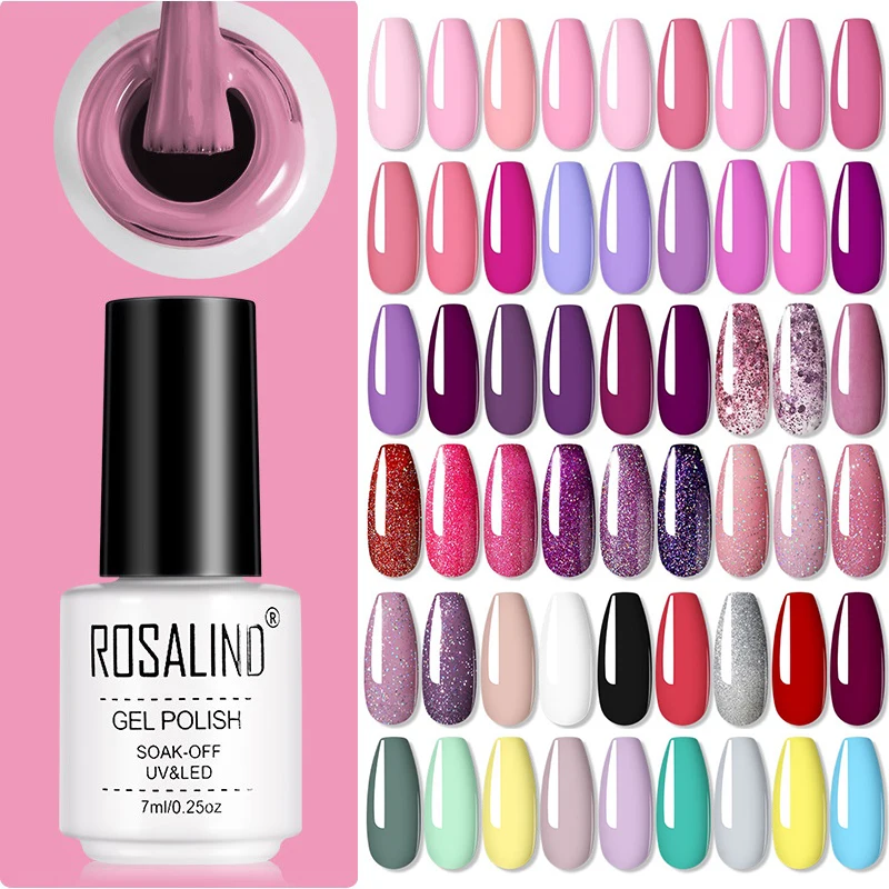 ROSALIND 7 мл Гель-лак для ногтей Чистый Розовый Фиолетовый Красный Сериз Varnis полуперманентный базовый верхний слой отмачиваемый Светодиодный УФ-лак