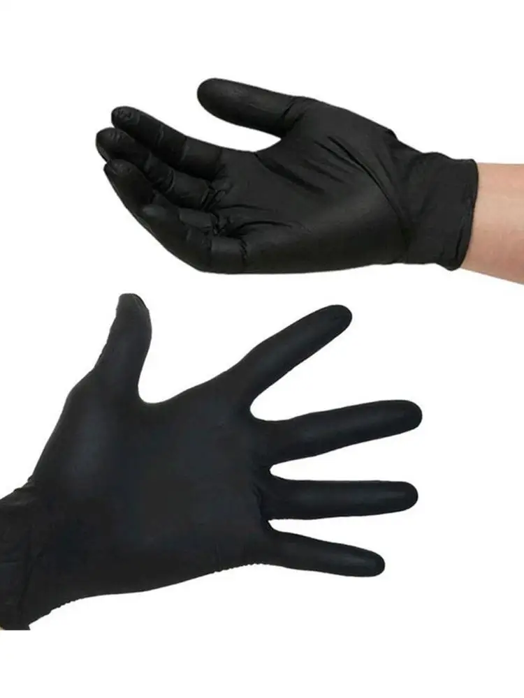 Черные перчатки, одноразовые синтетические перчатки без присыпки, среднего и большого размера, 100 шт.