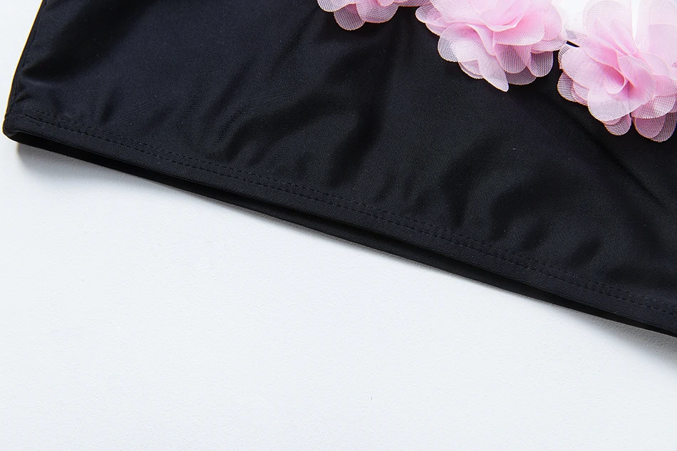 Купальник для девочек 2021, купальник из двух предметов с косыми плечами, купальник черного цвета с косыми плечами, комплект бикини с розовыми цветами