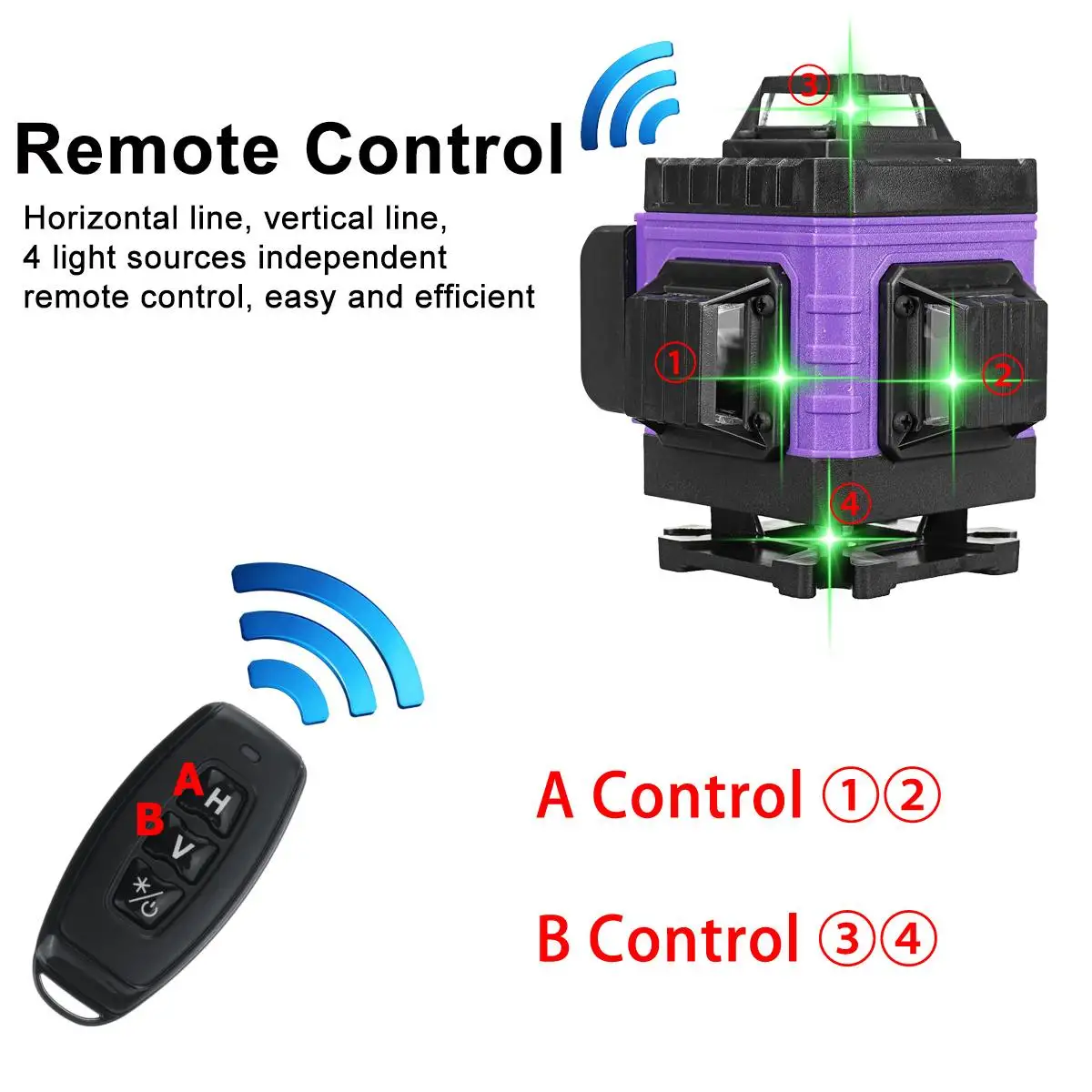 16 линий 360 ° Горизонтальный Вертикальный крест 4D зеленый светильник лазерный уровень самонивелирующийся супер мощный лазерный луч