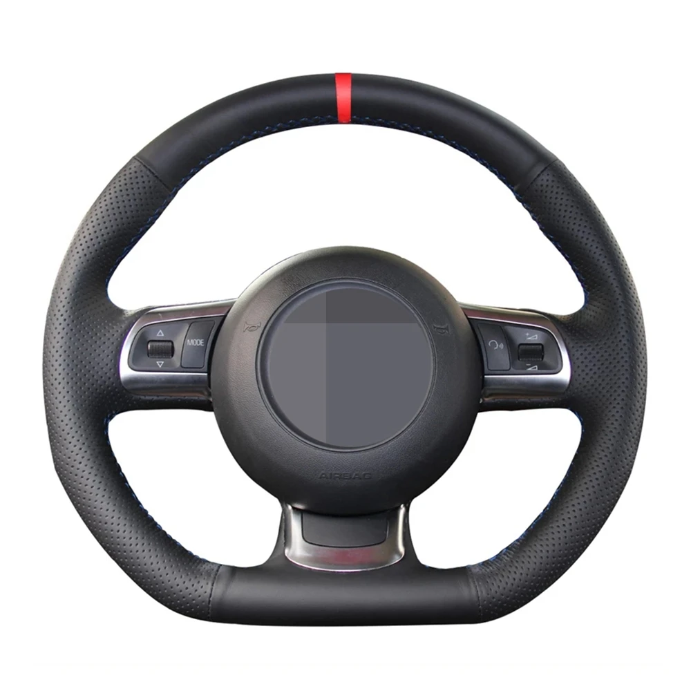 Сшитая вручную чехол рулевого колеса автомобиля Нескользящая черная...