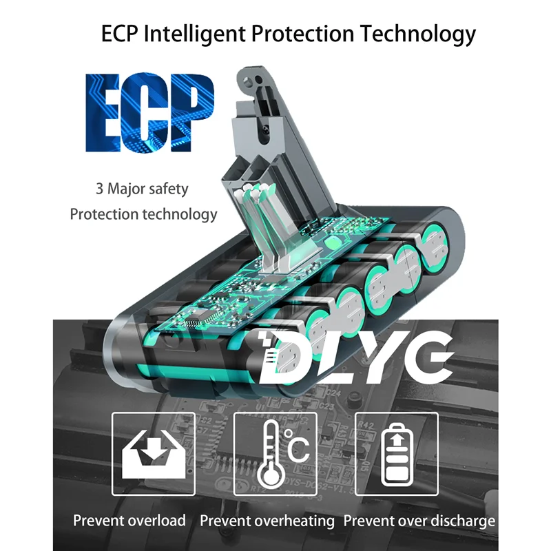 Встроенная защита от перегрузки, перегрузки и перегрузки от короткого замыкания, идеально подходит для серии Dyson V6, выключите зарядное устройство после полной зарядки, чтобы сохранить длительный срок службы батареи.