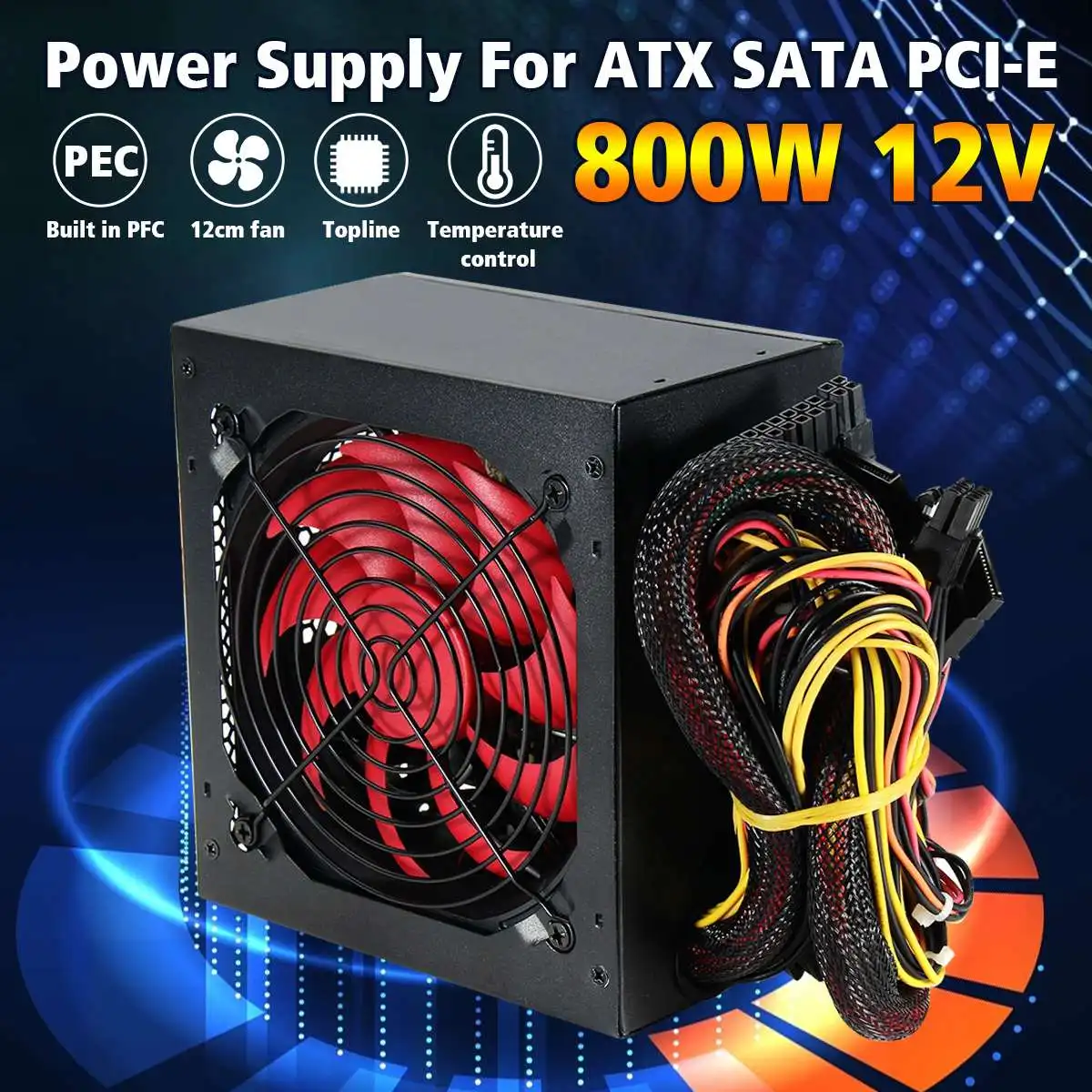 Новый блок питания для ПК 800 Вт 800 Вт 20 + 4-контактный вентилятор 12 см ATX 12 В Molex PCIE WSATA PCI